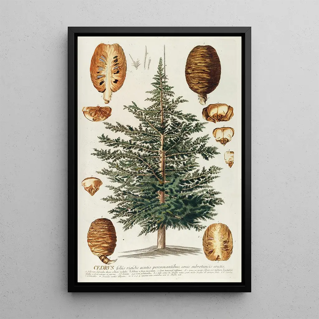 Det konsttryck Cèdre III av Georg Dionysius Ehret är en visuell hyllning till trädens prakt. Med noggranna detaljer framhäver verket den rika texturen av barken och bladens finhet, vilket skapar en atmosfär av lugn och eftertanke. Färgerna, från djupgrönt till jordbrunt, väcker en nära koppling till naturen. Akvarelltekniken, som Ehret behärskar med bravur, fångar ljus och skugga och ger denna botaniska framställning en nästan levande dimension. Detta konsttryck bjuder in betraktaren att stanna upp och uppskatta skönheten hos cederträ, symboler för styrka och långlivhet.