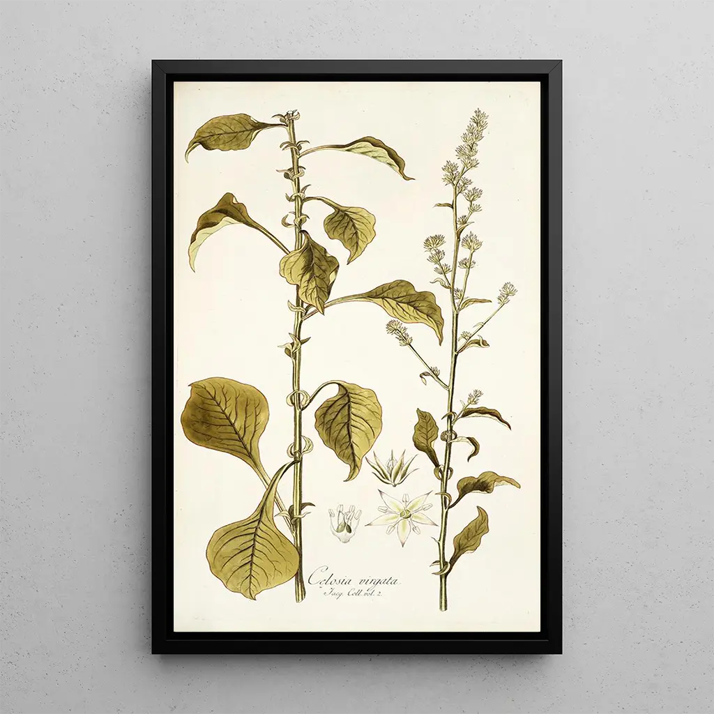 Nikolaus Joseph Freiherr von Jacquin, botanist och konstnär från 1700-talet, präglade sin tid med sin innovativa metod för botanisk skildring. Hans utbildning i Wien och resor till kolonierna gav honom möjlighet att upptäcka en mängd växtarter, som han kunde återge med enastående precision. Påverkad av de vetenskapliga strömningarna under sin tid bidrog Jacquin till utvecklingen av botaniken samtidigt som han utvecklade en unik konstnärlig stil. Hans verk, inklusive detta konsttryck av Celosia virgata, vittnar om harmonin mellan konst och vetenskap, vilket gör honom till en framstående figur inom botanisk konsthistoria.