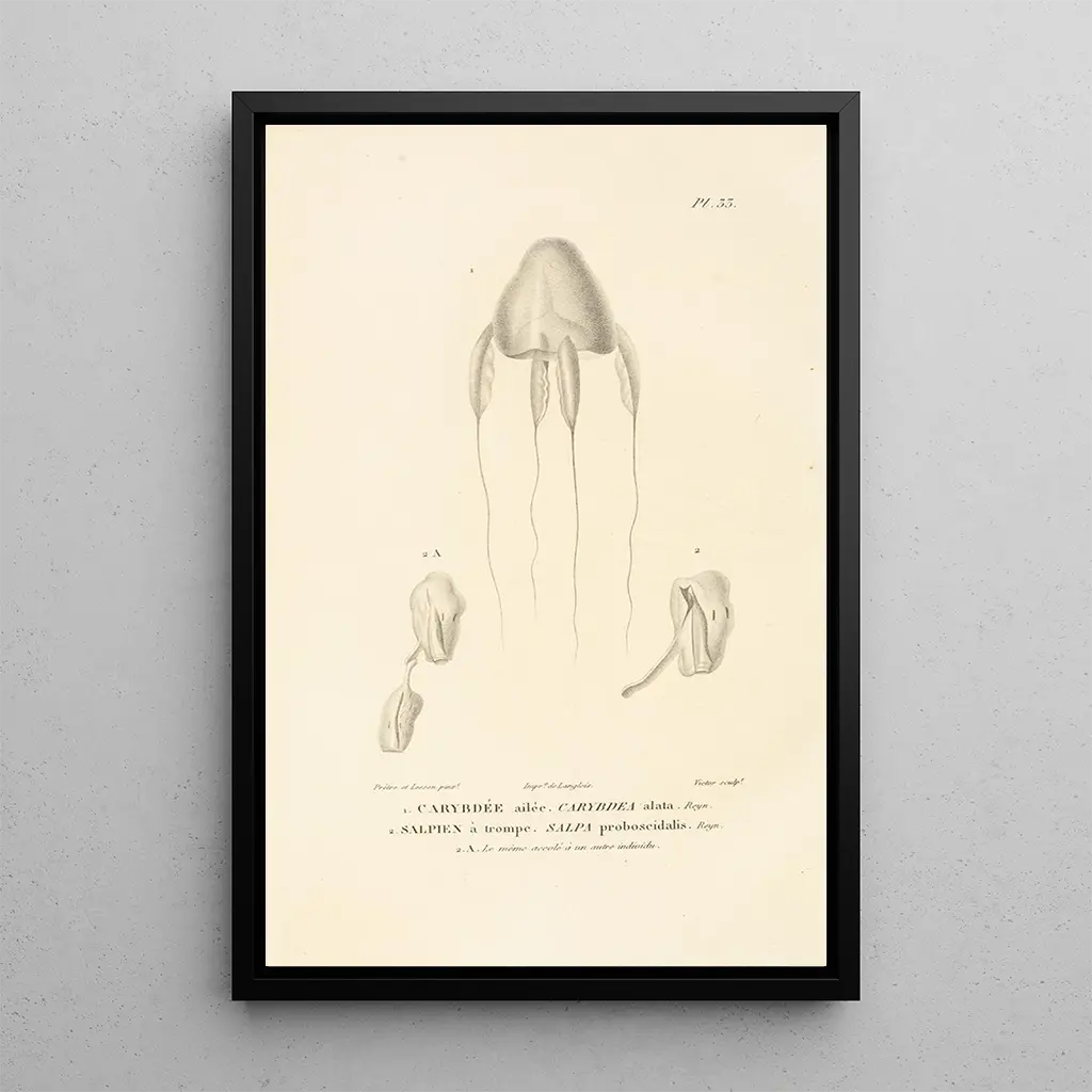 Den konsttryck av Centurie zoologique Pl33 erbjuder en fängslande inblick i den zoologiska mångfalden, där varje varelse är avbildad med slående precision. De livfulla nyanserna och de noggranna detaljerna i illustrationerna skapar en levande, nästan påtaglig atmosfär. Detta verk inbjuder till noggrann eftertanke och avslöjar skönheten och komplexiteten i faunan. Formerna och färgerna kombineras för att ge liv åt ett rikt och fascinerande djuruniversum, vilket gör detta konsttryck till en äkta hyllning till naturen.