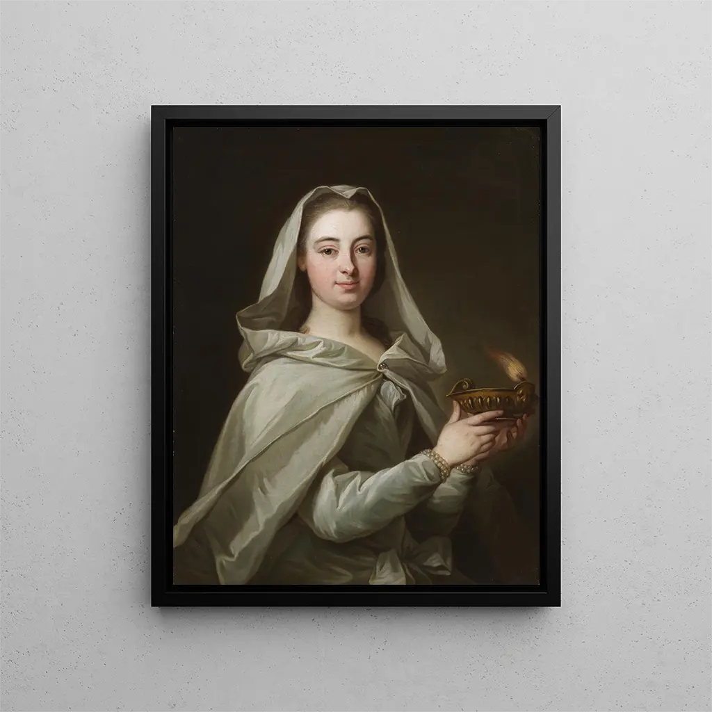 Reproduktion Charlotta Fredrika Sparre som Vestal - Donat Nonnotte – Fängslande introduktion I den fascinerande konstvärlden överskrider vissa verk tidens gränser och fängslar entusiaster med sin skönhet och djup. Konsttrycket Charlotta Fredrika Sparre som Vestal - Donat Nonnotte är ett perfekt exempel. Detta stycke, som väcker både grace och mystik, för oss in i en värld där historia och mytologi möts. Genom konstnärens blick upptäcker vi inte bara ett porträtt, utan också en inbjudan att utforska de dolda berättelserna bakom de avbildade figurerna. Verket för oss till en tid då konst fungerade som en spegel för samhället, och avslöjade dess samtida aspirationer och värderingar. Stil och unikhet i verket Föreställningen av Charlotta Fredrika Sparre av Donat Nonnotte utmärker sig genom sin elegans och sin finhet. Konstnären använder en palett av delikata färger, som framhäver nyanserna i huden och ljusstyrkan i tygen. Modellens hållning, som utstrålar lugn, återspeglar värdigheten hos de vestaler från det antika Rom, dessa prästinnor som hade ansvar för att vaka över den heliga elden. Nonnotte lyckas fånga inte bara Sparres fysiska drag, utan också hennes essens, hennes själ. Varje detalj, från draperiet i hennes klänning till glansen i hennes blick, verkar berätta en historia – den om en kvinna som är både stark och sårbar, rotad i sin tid men samtidigt strävar efter evigheten. Detta porträtt nöjer sig inte med att frysa ett ögonblick; det inbjuder betraktaren att reflektera över den inre livets djup hos dess subjekt. Konstnären och hans inflytande Donat Nonnotte, fransk målare från 1700-talet, anses ofta vara en hantverkare av känslor. Hans arbete, som är förankrat i den neoklassiska rörelsen, utmärks av en ständig strävan efter harmoni och skönhet. Utbildad i de stora mästarnas ateljéer, har Nonnotte utvecklat en stil som förenar akademisk precision med personlig känslighet. Hans inflytande sträcker sig bortom hans samtida och inspirerar generationer av konstnärer att utforska sambandet mellan individen och kollektivet, mellan det förflutna och nuet. Genom att välja att avbilda Charlotta Fredrika Sparre, är han