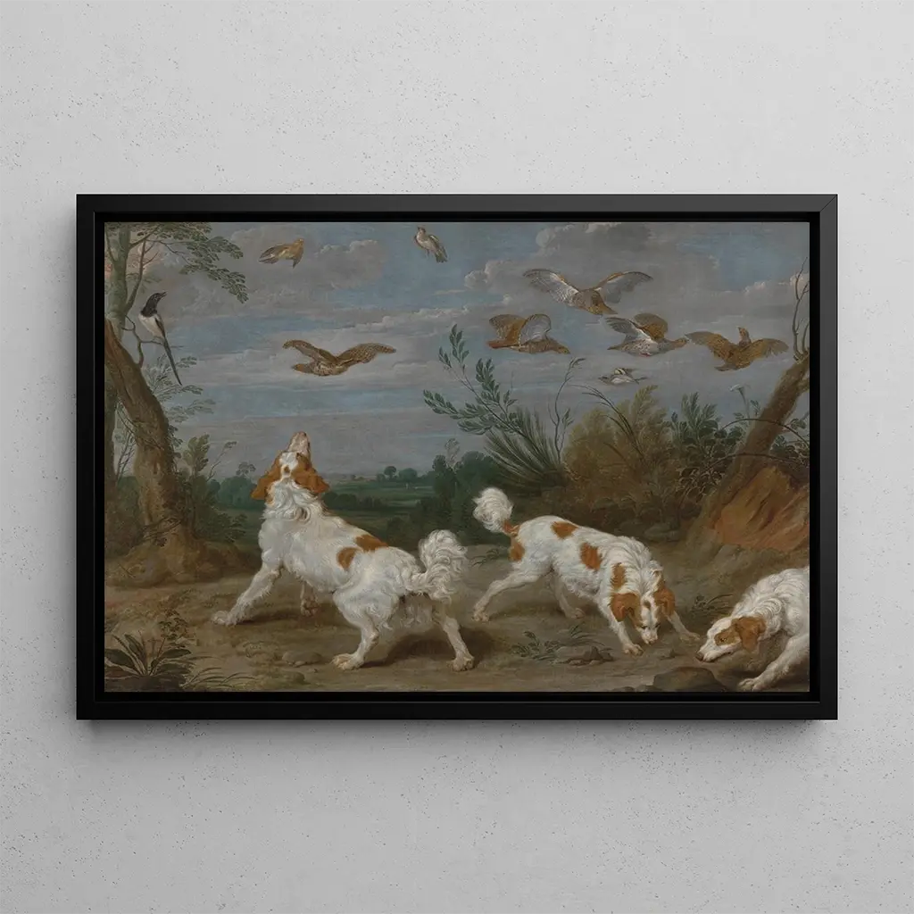 Chasse à la Perdrix : une scène de vie animée La reproduction de Chasse à la Perdrix de Jan Wildens évoque une scène de chasse vibrante, où la nature et l'homme se rencontrent dans un ballet de mouvement et de couleur. Les teintes chaudes et terreuses, typiques du baroque flamand, se mêlent à des détails minutieux qui donnent vie aux personnages et à leur environnement. La technique de Wildens, qui utilise la lumière pour accentuer les formes et les textures, crée une atmosphère dynamique et immersive. Chaque élément, des perdrix aux chasseurs, est rendu avec une telle précision qu'on peut presque entendre le bruissement des feuilles et le chant des oiseaux. Jan Wildens : un maître du paysage flamand Jan Wildens, actif au XVIIe siècle, est reconnu pour sa capacité à fusionner le paysage et la narration dans ses œuvres. Formé dans la tradition flamande, il a su s'imposer comme un artiste majeur de son époque, influencé par des maîtres tels que Rubens. Wildens a souvent exploré des thèmes liés à la chasse et à la nature, capturant des moments de vie quotidienne avec une sensibilité unique. Son travail a non seulement enrichi le patrimoine artistique flamand, mais a également influencé de nombreux artistes contemporains, consolidant son statut d'icône du paysage baroque. Une acquisition décorative aux multiples atouts Choisir la reproduction de Chasse à la Perdrix est une manière élégante d'enrichir votre décoration intérieure. Ce tableau, avec sa représentation vivante de la nature, s'adapte parfaitement à divers espaces, que ce soit dans un salon, un bureau ou une salle à manger. Sa qualité d'impression assure une fidélité remarquable aux détails et aux couleurs de l'œuvre originale, tout en apportant une touche d'authenticité à votre décor. En intégrant cette toile dans votre intérieur, vous offrez à votre espace une dimension artistique et chaleureuse, tout en célébrant le talent de Jan Wildens.