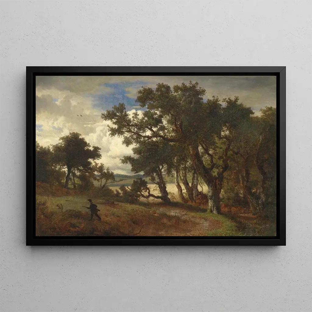 Ce tableau captivant, "Chasseur dans le paysage", nous plonge au cœur d'une scène bucolique où la nature s'épanouit dans toute sa splendeur. Les nuances de vert, de brun et de bleu s'entrelacent harmonieusement, créant une atmosphère paisible et sereine. La technique de peinture à l'huile d'Andreas Achenbach permet de rendre les détails des feuillages et des cieux d'une manière presque photographique. Le chasseur, figure centrale, semble en parfaite communion avec son environnement, illustrant la relation intime entre l'homme et la nature. Cette œuvre invite à la contemplation et à la réflexion sur notre place dans le monde naturel.