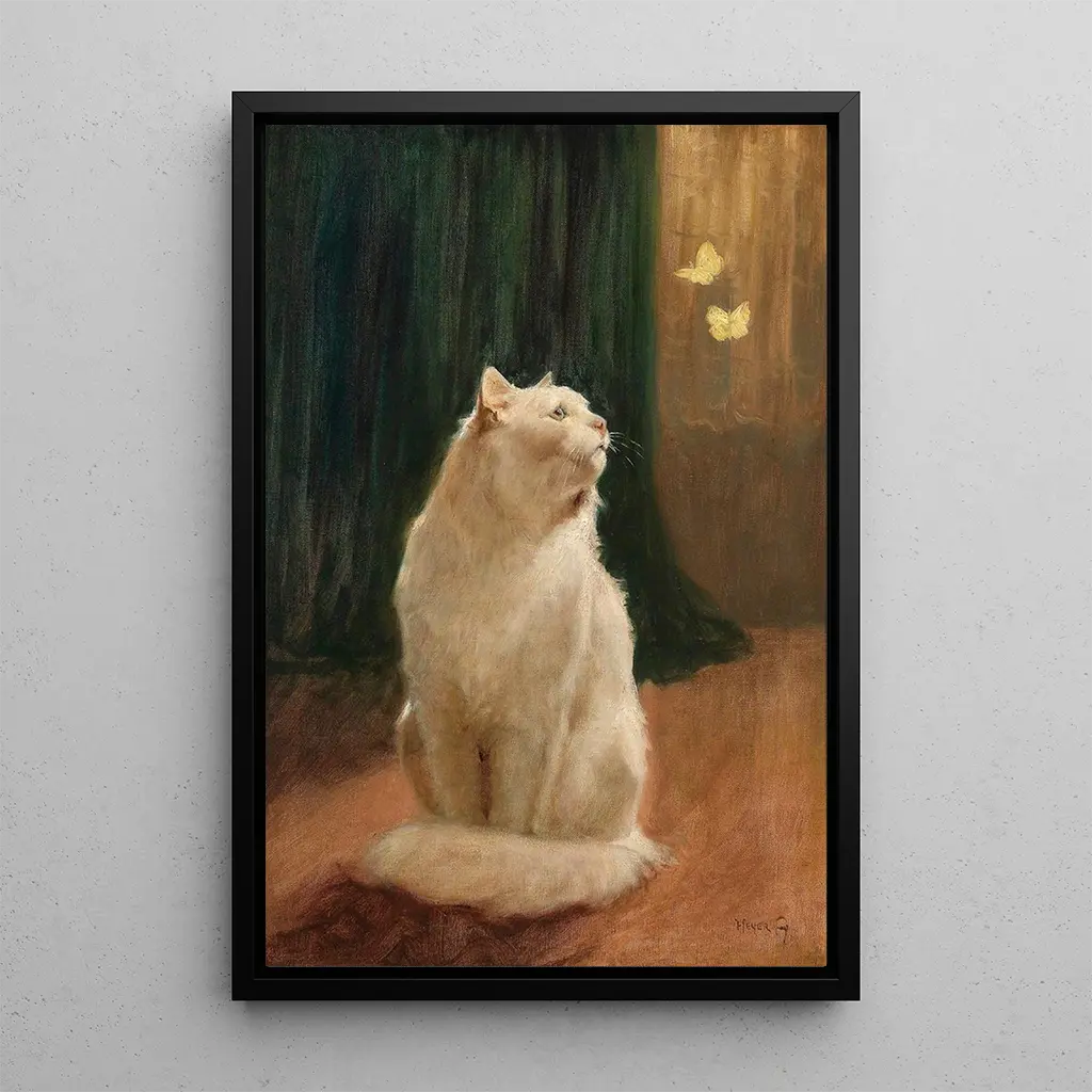 Konsttryck | Chat blanc et deux papillons citron - Arthur Heyer