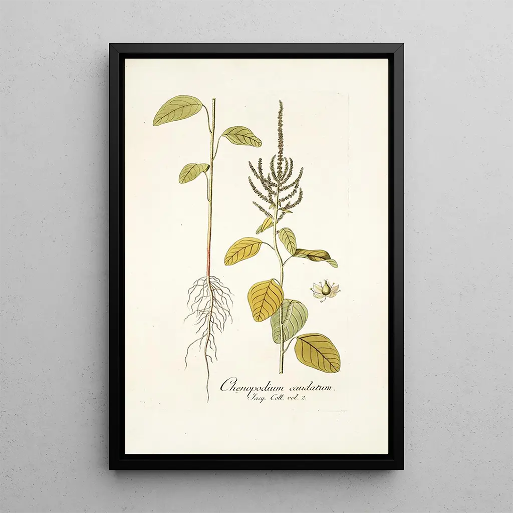 Konsttrycket av Chenopodium caudatum är ett perfekt dekorativt val för att berika ditt boendeutrymme. Oavsett om det är i ett vardagsrum, ett kontor eller ett sovrum, tillför denna duk en touch av natur och lugn. Dess tryckkvalitet garanterar en trohet mot detaljerna i originalverket, vilket gör det möjligt att fullt ut uppskatta skönheten hos denna växt. Med sin eleganta stil och sin lugnande färgpalett passar detta konsttryck perfekt in i alla inredningsstilar och tillför en konstnärlig dimension till ditt hem.