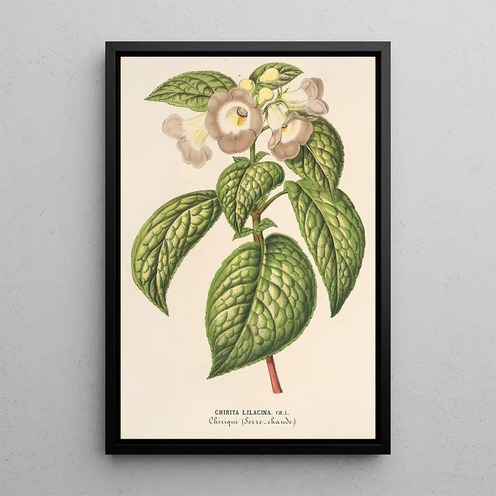 Konsttrycket av Chirita lilacina förflyttar oss till en värld av mildhet och finhet. Detta verk lyfter fram de delikata nyanserna i blomman, med subtila lila nyanser som blandas med inslag av vitt och grönt. Akvarelltekniken som används av Lemaire ger liv åt varje detalj och hyllar den flyktiga skönheten hos denna växt. Atmosfären som avtecknar sig i denna målning är fylld av poesi och inbjuder betraktaren att förundras över naturens enkelhet och elegans.