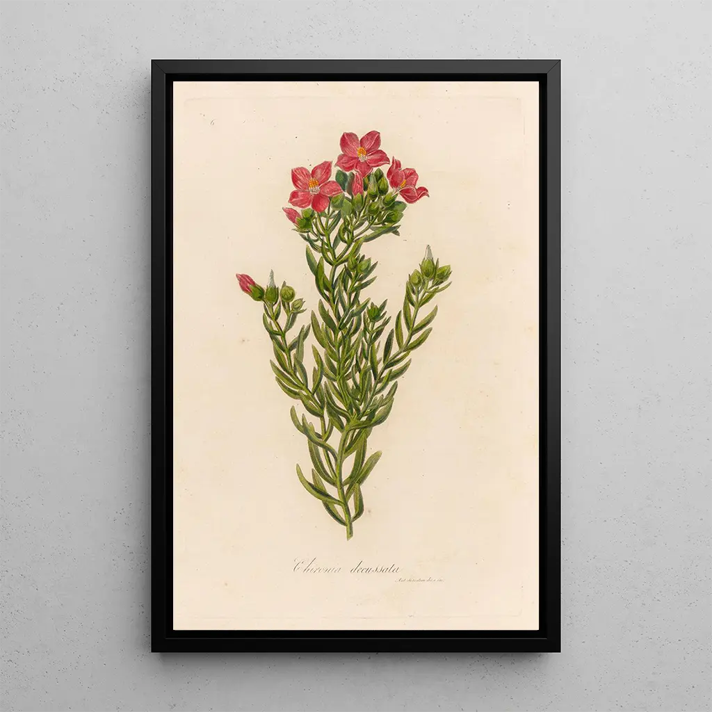 Konsttrycket av Chironia decussata är ett perfekt val för dem som vill tillföra ett inslag av natur till sin inredning. Oavsett om det är i ett vardagsrum, ett kontor eller ett sovrum, ger detta verk en lugnande och elegant atmosfär. Dess reproduktionskvalitet garanterar trohet mot originalets detaljer, så att man fullt ut kan njuta av denna blommas skönhet. Genom att integrera detta konsttryck i ditt utrymme skapar du en miljö som hyllar naturen samtidigt som du tillför en konstnärlig touch till din inredning.