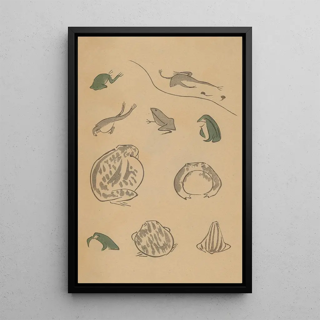 I denna konsttryck av målningen Choju ryakugashiki Pl37 fördjupar sig Masayoshi Kitao i en värld där naturen blomstrar i all sin prakt. De livfulla färgerna och de noggranna detaljerna av djur och växter skapar en levande och lugn atmosfär. Tekniken med ukiyo-e, som är karakteristisk för Edo-perioden, fångar lättheten i formerna och rikedomarna i texturerna, vilket gör varje element nästan kännbart. Detta konsttryck inbjuder till djup eftertanke, där varje blick avslöjar en ny aspekt av den naturliga skönheten.