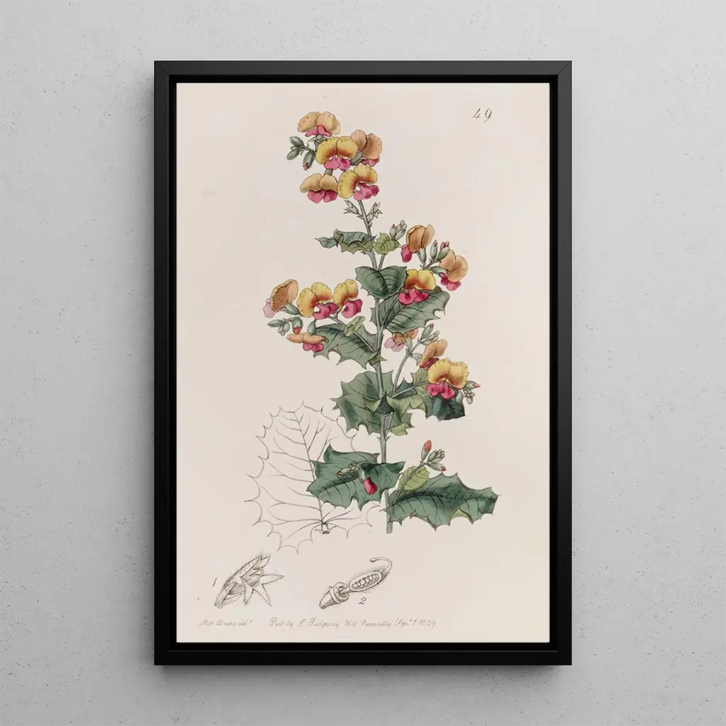 Konsttrycket av "Chorozema à feuilles variées" är ett dekorativt val som kommer att försköna vilket utrymme som helst, oavsett om det är ett vardagsrum, ett kontor eller ett sovrum. Dess tryckkvalitet och trohet mot originalverket gör det till ett värdefullt tillskott för konst- och botanikkännare. Denna tavla, med sin förfinade estetik, tillför en friskhet och naturkänsla till ditt hem. Genom att välja denna canvas, väljer du ett konsttryck som inte bara förskönar din inredning, utan också väcker tankar om rikedom och mångfald i den växtliga världen.