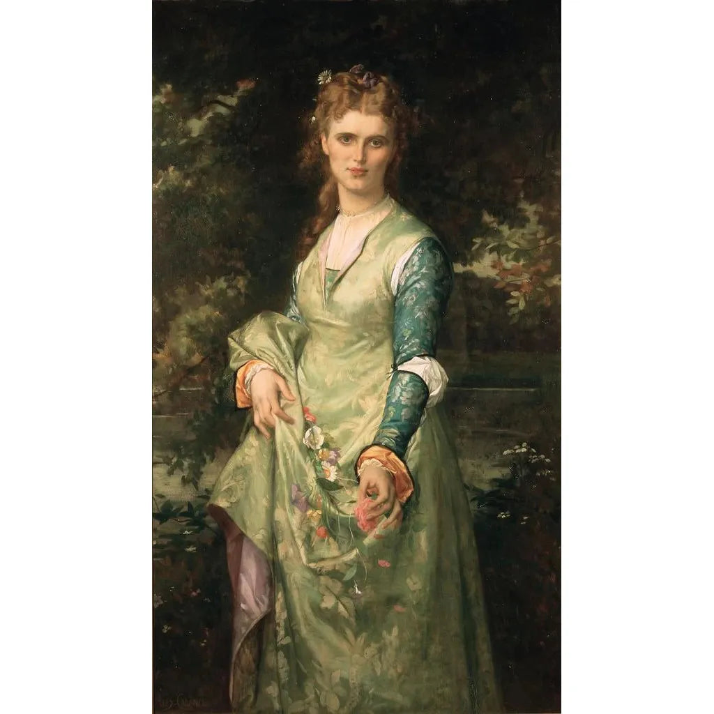 I detta konsttryck fångar Alexandre Cabanel essensen av Christina Nilsson, den berömda operasångerskan, i rollen som Ophelia. Kanvasen är genomsyrad av en romantisk atmosfär, där pastellfärgernas mjukhet blandas med mörkare nyanser, vilket väcker både skönhet och melankoli hos karaktären. Cabanel's teknik, med sina noggranna detaljer och mästerliga användning av ljus, ger liv åt den känsla som utstrålar från denna kvinnliga figur. Varje penseldrag verkar berätta en historia och förflyttar betraktaren till en drömvärld fylld av passion.