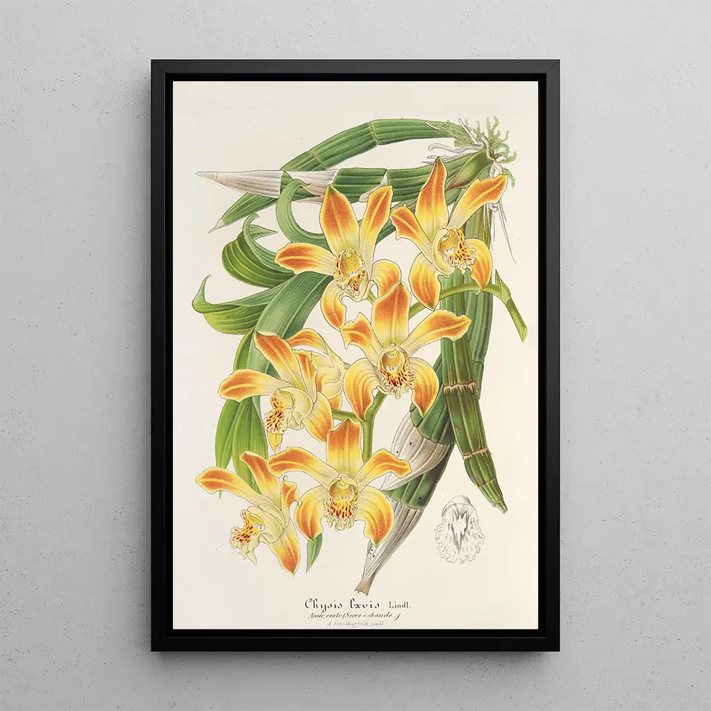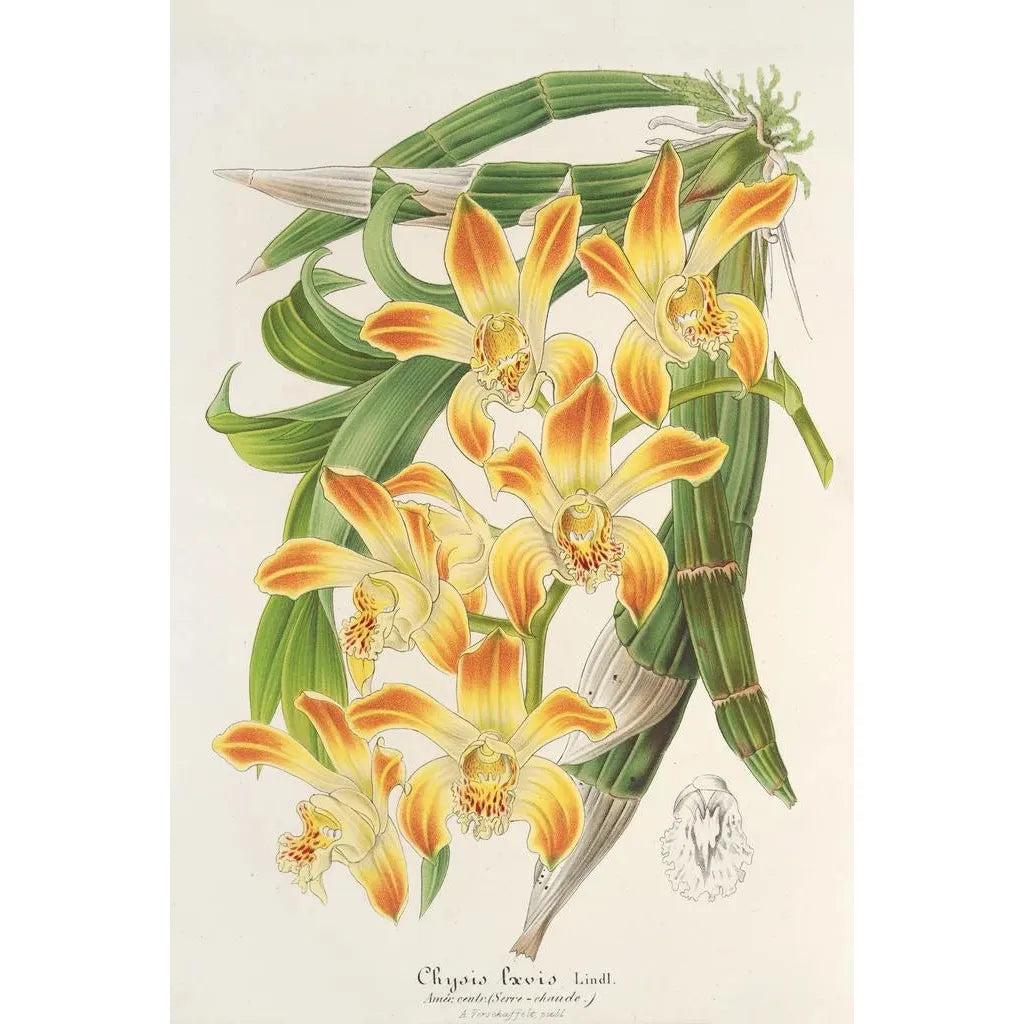 Konsttrycket av Chysis lævis är ett perfekt dekorativt inslag för att berika ditt hem, oavsett om det är i ett vardagsrum, ett kontor eller ett sovrum. Dess utskriftskvalitet garanterar en trohet mot färger och detaljer i originalverket, vilket ger ett oemotståndligt estetiskt tilltal. Genom att integrera detta konsttryck i din inredning tillför du en touch av natur och sofistikering, samtidigt som du hyllar en botanisk konstnärs talang. Denna målning kommer att tilltala konst- och botanikkännare och skapa en varm och välkomnande atmosfär i ditt hem.