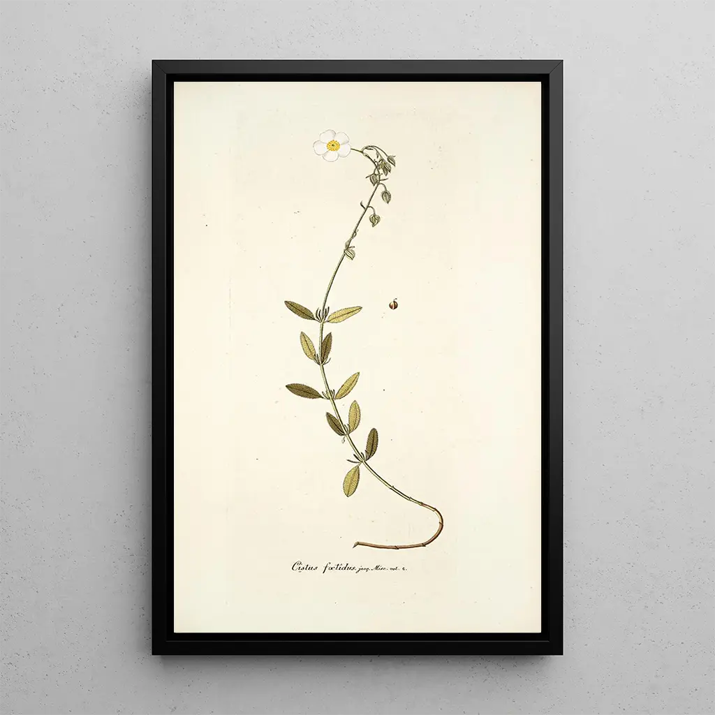 Cistus foetidus : en hyllning till den medelhavsinspirerade floran Konsttrycket av Cistus foetidus, skapad av Nikolaus Joseph Freiherr von Jacquin, för oss till de soliga landskapen i Medelhavet. Denna tavla framhäver robustheten och skönheten hos cistusklockorna, med livfulla nyanser som fångar den vilda naturens essens. Akvarelltekniken gör det möjligt att återge texturen på blommornas kronblad och färgernas livfullhet, vilket skapar en atmosfär som är både dynamisk och lugnande. Varje element i kompositionen är noggrant balanserat, inbjudande till en visuell utforskning av de botaniska detaljerna, samtidigt som den hyllar den botaniska mångfalden. Nikolaus Joseph Freiherr von Jacquin : en konstnär i tjänst för vetenskapen Nikolaus Joseph Freiherr von Jacquin är erkänd som en av pionjärerna inom botanisk illustration under 1700-talet. Hans utbildning vid Wiens universitet och hans resor genom Europa och tropiska regioner har berikat hans förståelse för växter. Hans verk, inklusive Cistus foetidus, är resultatet av noggrann observation och en passion för botanik. Jacquin har inte bara illustrerat växter, utan också bidragit till att främja den vetenskapliga kunskapen under sin tid, och blivit en ikon inom det naturalistiska konstområdet. En dekorativ tillgång med många fördelar Konsttrycket av Cistus foetidus är ett perfekt dekorativt föremål för att försköna ditt hem, oavsett om det är i ett vardagsrum, ett kontor eller ett sovrum. Dess livfulla och realistiska avbildning av cistusklockorna ger en känsla av friskhet och vitalitet till ditt utrymme. Kvaliteten på trycket garanterar en imponerande trohet mot detaljerna i det ursprungliga verket, samtidigt som det erbjuder en estetisk attraktion som garanterat väcker beundran. Genom att välja denna tavla gör du ett val för en dekoration som kombinerar naturlig skönhet med konstnärlig sofistikering.