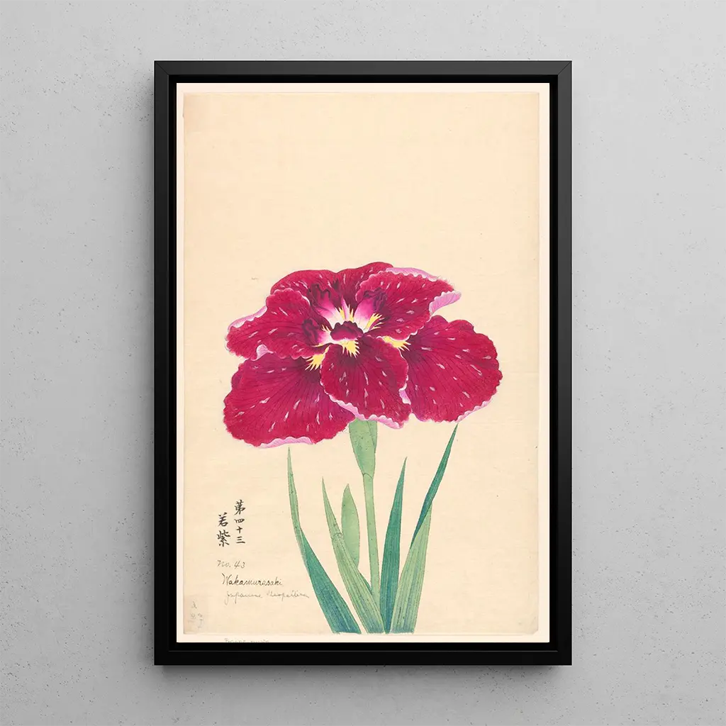Konsttrycket av Cléopâtre japonaise Wakamurasaki avslöjar en fascinerande fusion mellan kulturer. I detta verk framhävs den kvinnliga figurens skönhet med livfulla färger och delikata mönster. Kompositionen, med sina flytande linjer och raffinerade detaljer, framkallar en atmosfär av mysterium och förförelse. Valet av nyanser, från djupa röda till glänsande guld, fångar ögat och inbjuder till eftertanke. Denna målning är en äkta hyllning till grace och elegans, som förkroppsligar Japans anda samtidigt som den hyllar en ikonisk historisk figur.