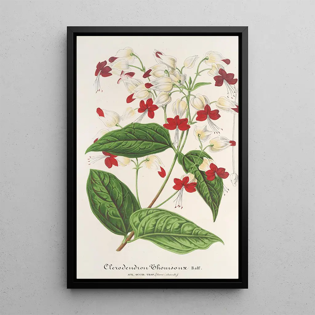 Konsttrycket av konsttrycket Clerodendrum Thomson är ett perfekt dekorativt val för att tillföra natur till ditt hem. Oavsett om det är i ett vardagsrum, ett kontor eller ett sovrum, kommer denna duk att lysa upp ditt utrymme med sina livfulla färger och exotiska charm. Kvaliteten på trycket garanterar en anmärkningsvärt trogen återgivning av detaljerna i det ursprungliga verket, vilket gör att du kan njuta fullt ut av Lemaire’s estetiska attraktion. Genom att integrera detta konsttryck i din inredning ger du din omgivning en varm och välkomnande atmosfär, samtidigt som du hyllar skönheten i den tropiska floran.