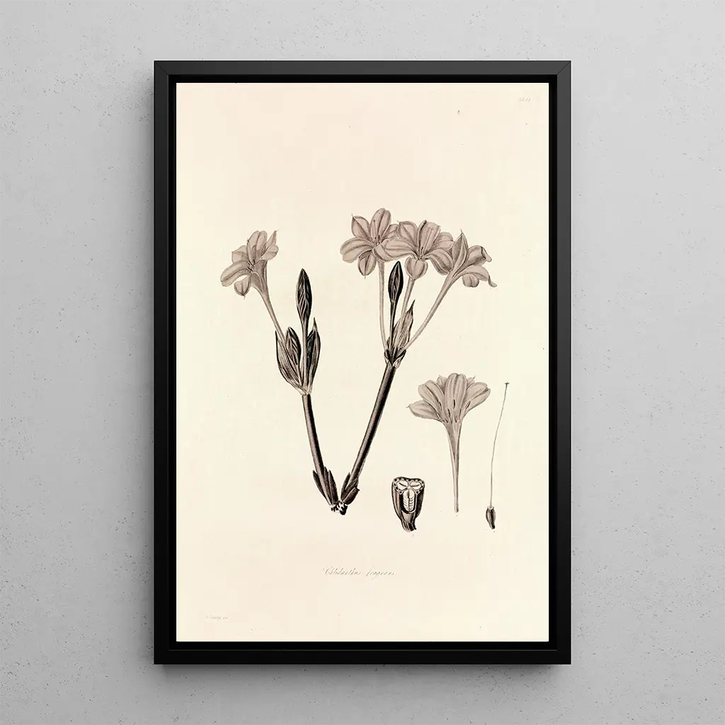 Collectanea botanica Pl34 : en utforskning av blomstrande underverk Konsttrycket av verket "Collectanea botanica Pl34" av John Lindley förflyttar oss till en värld där varje växt är ett konstverk i sig. De delikata detaljerna i blommor och blad återges med en anmärkningsvärt precision, vilket avslöjar naturens inneboende skönhet. Färgerna, från pastellnyanser till mer livfulla toner, skapar en lugnande och inspirerande atmosfär. Lindley, med sin talang, lyckas fånga harmoni och mångfald i växtriket, och bjuder in betraktaren att uppskatta formernas och färgernas prakt. Detta konsttryck är en äkta inbjudan till att upptäcka botaniska underverk. John Lindley : en arvtagare av den botaniska traditionen John Lindley, en framstående figur från 1800-talet, lyckades kombinera sin botaniska expertis med sin konstnärliga känsla i verk som "Collectanea botanica Pl34". Respekterad botanist, han bidrog till klassificeringen av arter samtidigt som han illustrerade dem med stor finess. Hans influenser sträcker sig från botaniska utforskningar av sin tid till konstnärliga rörelser som hyllade naturen. Lindley lämnade ett varaktigt arv, inte bara som vetenskapsman, utan också som konstnär, och omdefinierade hur botaniken kan uppfattas och uppskattas. Hans arbete fortsätter att inspirera dem som är intresserade av naturens skönhet. En dekorativ tillgång med många fördelar Att välja konsttrycket av "Collectanea botanica Pl34" av John Lindley är att göra ett val för en dekorativ detalj som berikar ditt boendeutrymme. Oavsett om det är i ett kontor, ett vardagsrum eller ett sovrum, tillför detta konsttryck en känsla av friskhet och elegans. Dess utskriftskvalitet och färgåtergivning garanterar ett starkt visuellt intryck, som fångar uppmärksamhet och väcker beundran. Genom att integrera detta verk i din inredning, nöjer du dig inte bara med att försköna ditt hem, utan tillför också en kulturell och konstnärlig dimension, som hyllar skönheten i växtvärlden samtidigt som det skapar en lugn och inspirerande atmosfär.