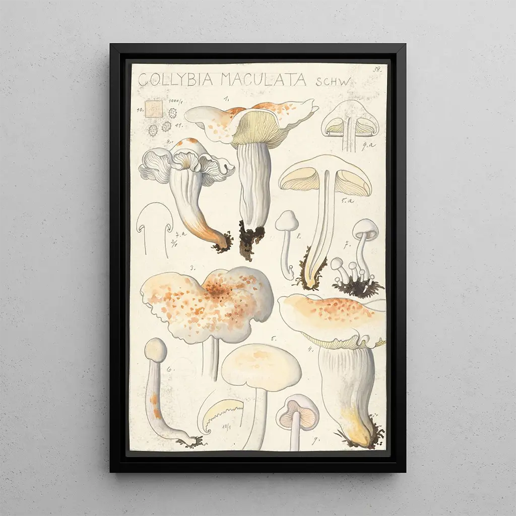 Collybie maculée Schw : en diskret skönhet från skogen Konsten av Collybie maculée Schw för oss in i en värld av subtilitet och elegans. Detta verk av Hans Baldung framhäver en svamp med unika mönster, inbäddad bland tät vegetation. Jordnära färger, från beige till brunt, blandas harmoniskt och skapar en varm och inbjudande atmosfär. Tekniken i målningen, präglad av realism, gör det möjligt att känna texturen och djupet i scenen. Varje detalj är noggrant utarbetad, vilket inbjuder till att utforska naturens underverk som omger oss. Hans Baldung : en pionjär inom naturalistisk konst Hans Baldung, född omkring 1484, är erkänd som en av de främsta konstnärerna under den tyska renässansen. Elev till Albrecht Dürer, utvecklade han en unik stil som förenar nordiska och italienska influenser. Baldung specialiserar sig på avbildningar av naturen, myter och allegorier, ofta med en viss mystik. Konsten av Collybie maculée Schw illustrerar perfekt hans talang för att fånga skönheten i naturliga element, samtidigt som den integrerar en symbolisk dimension. Hans verk är ett vittnesmål om naturens betydelse i konstnärets tid, och speglar en känslighet som fortfarande resonerar idag. En dekorativ förvärv med många fördelar Att välja konsttryck av Collybie maculée Schw är att göra ett val för en dekorativ detalj som kan försköna ditt hem. Oavsett om det är i ett vardagsrum, ett kontor eller ett sovrum, tillför denna duk en touch av natur och lugn. Dess utskriftskvalitet garanterar en exceptionell trohet mot detaljerna i originalverket, vilket gör det möjligt att uppskatta varje nyans och textur. Genom att integrera detta konsttryck berikar du ditt utrymme med ett konstverk som förenar estetik och poesi, samtidigt som du hyllar en mästares talang från renässansen.