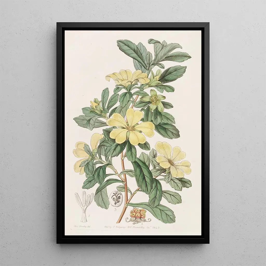 En konsttryck av "Condollea tétrandrée" av Sydenham Edwards är en verklig hyllning till naturens finhet. Detta verk framhäver en sällsynt växt, vars noggranna detaljer och mjuka färger framkallar en värld av lugn och harmoni. Skiftningarna av grönt och vitt, subtilt nyanserade, fångar ljuset på ett sätt som ger liv åt duken. Den botaniska illustratörstekniken från Edwards möjliggör att avslöja komplexiteten i former och texturer, och erbjuder en visuell upplevelse som inbjuder till förundran och eftertanke.