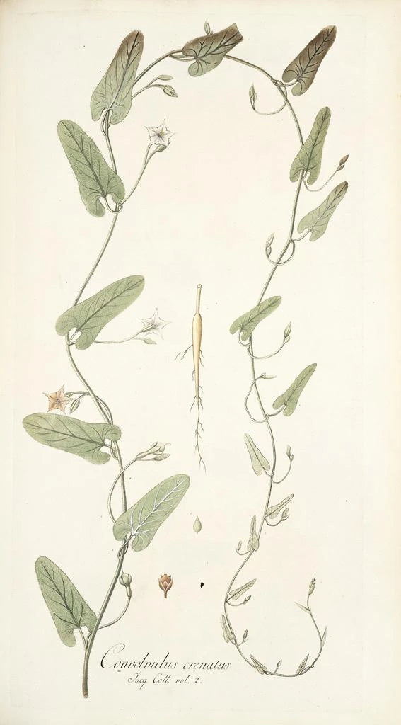 Nikolaus Joseph Freiherr von Jacquin, en framstående figur från 1700-talet, lyckades förena konst och vetenskap i sina skapelser. Den välkände botanisten reste världen runt för att studera och dokumentera den växtliga mångfalden. Hans konstnärliga tillvägagångssätt, influerat av rokoko-rörelsen, kännetecknas av vetenskaplig precision och estetisk känslighet. Jacquins verk, som Convolvulus crenatus, är inte bara trogna avbildningar av naturen, utan också vittnesmål om förundran inför den växtliga världens skönhet.