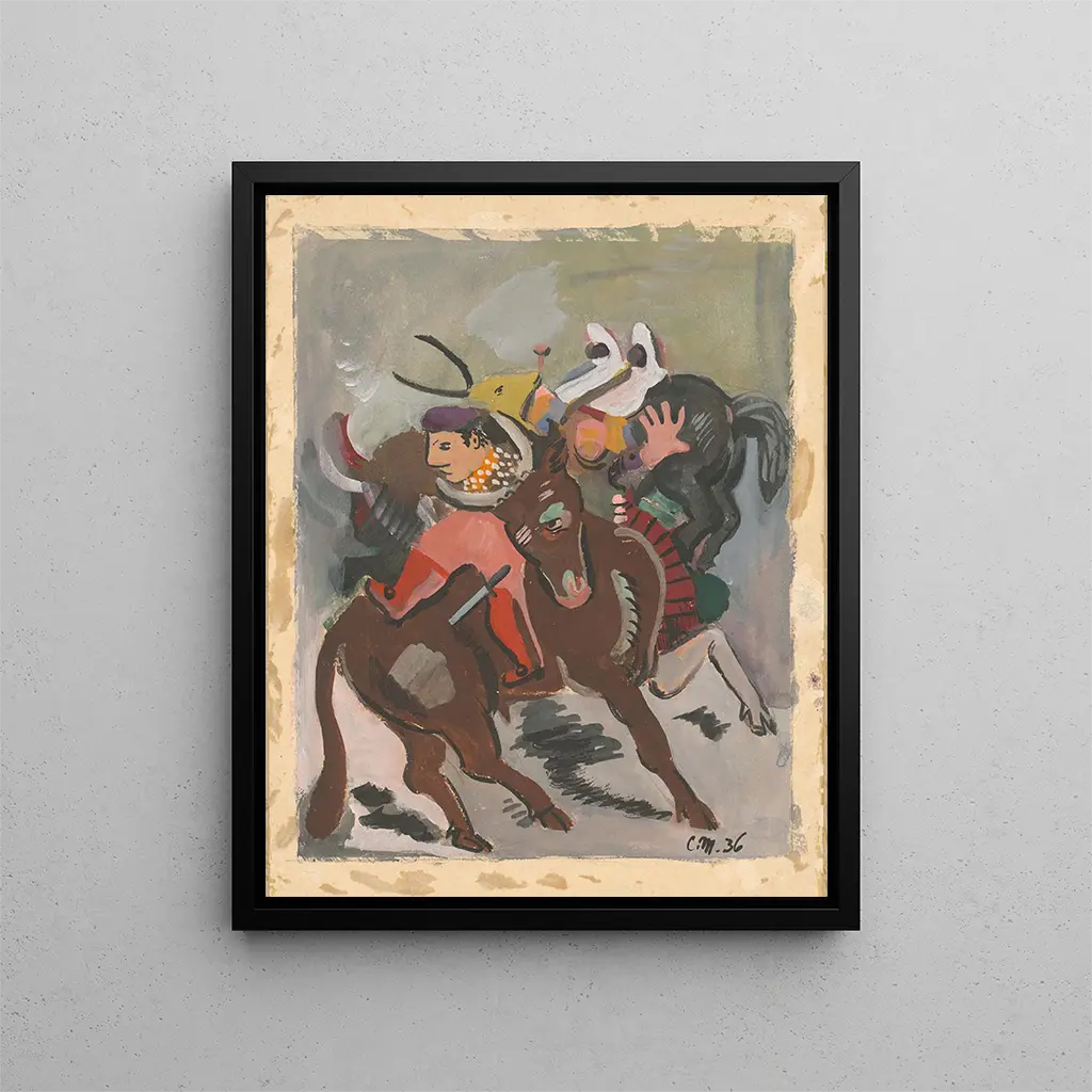 Tavlan "Corrida" av Cyprian Majernik fångar själva essensen av passion och drama, och gestaltar en scen där konsten att tjurfäktning blandas med en slående estetisk framställning. I detta verk lyckas konstnären att transcendera den enkla skildringen av en corrida för att skapa en sann hyllning till livet, döden och modet. De livfulla färgerna och de dynamiska rörelserna hos figurerna fördjupar betraktaren i en värld där varje penseldrag berättar en historia, och där den påtagliga spänningen mellan matadoren och tjuren avläses i ansiktena på protagonisterna. Långt ifrån att vara en enkel avbildning, bjuder detta verk in till reflektion över den mänskliga känslomässighetens komplexitet och den tragiska skönheten i kampen.