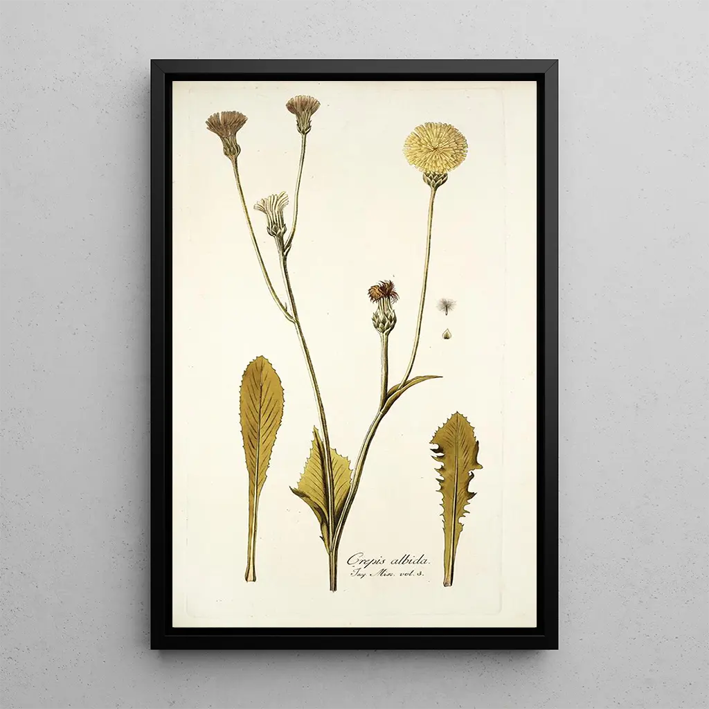 Konsttrycket av Crepis albida är ett dekorativt val som kan tillföra en touch av naturen till ditt hem. Oavsett om det är i matsalen, på kontoret eller i sovrummet, passar detta konstverk alla stilar, från rustikt till modernt. Kvaliteten på trycket garanterar en enastående trohet mot färger och detaljer i originalverket, samtidigt som det ger en behaglig estetik. Genom att integrera detta konsttryck i din inredning väljer du ett verk som framkallar den vilda skönheten och harmonin i naturen, samtidigt som du berikar ditt boendeutrymme.