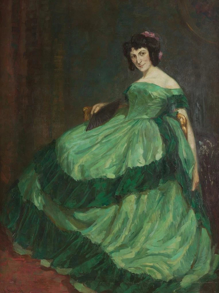Konsttryck | Dam i grön klänning - Betty Heldrich