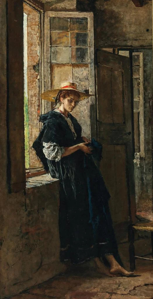Konsttryck | Dame au Chapeau de Paille à la Fenêtre - Mosè Bianchi