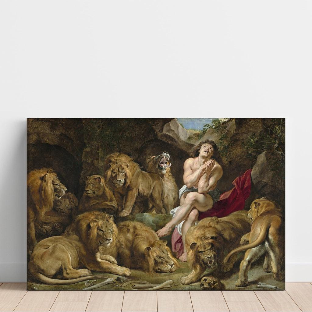 I verket Daniel i lejongropen, skapat mellan 1614 och 1616, fördjupar Peter Paul Rubens åskådaren i en biblisk berättelse med en oöverträffad känslomässig intensitet. Denna emblematiska målning skildrar ögonblicket då Daniel, kastad i lejongropen för att ha trotsat kungen, möter sitt öde med mod och lugn. Rubens, den obestridda mästaren av den flamländska barocken, lyckades fånga inte bara den dramatiska spänningen i scenen, utan också den sublima skönheten hos de mänskliga och djuriska figurer som befolkar denna mästerliga komposition.