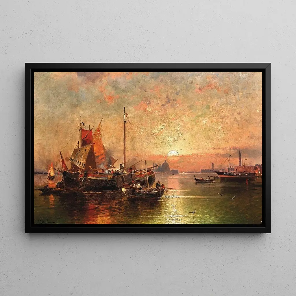 Dans la lagune vénitienne : un voyage au cœur de Venise Franz Richard Unterberger nous transporte avec "Dans la lagune vénitienne" dans un tableau où la magie de Venise se dévoile. Les gondoles glissent paisiblement sur les eaux scintillantes, tandis que les reflets des bâtiments historiques dansent à la surface. La palette de couleurs chaudes, mêlant des teintes dorées et des bleus profonds, crée une atmosphère romantique et envoûtante. La technique de l'huile sur toile permet à Unterberger de capturer la lumière et l'ombre, donnant vie à cette scène emblématique. Ce tableau est une véritable invitation à explorer les charmes de la lagune et à ressentir l'âme de cette ville unique. Franz Richard Unterberger : l'artiste des paysages vénitiens Né en 1838, Franz Richard Unterberger est un peintre autrichien reconnu pour ses œuvres inspirées par la beauté de Venise. Évoluant au XIXe siècle, il s'inscrit dans le mouvement romantique, mettant en avant des paysages idylliques et des scènes de la vie quotidienne. Influencé par les grands maîtres de la peinture vénitienne, Unterberger développe un style caractérisé par une attention minutieuse aux détails et une maîtrise de la lumière. Ses œuvres, dont "Dans la lagune vénitienne", sont prisées par les collectionneurs et témoignent de son talent exceptionnel. La reproduction de cette toile permet de redécouvrir l'essence de Venise à travers son regard. Une acquisition décorative aux multiples atouts La reproduction de "Dans la lagune vénitienne" est un choix parfait pour enrichir votre décoration intérieure, que ce soit dans un salon, un bureau ou une chambre. Sa qualité d'impression et sa fidélité aux couleurs et aux détails de l'œuvre originale en font un ajout remarquable à votre espace. Ce tableau évoque une atmosphère de sérénité et de rêve, tout en apportant une touche d'élégance à votre intérieur. Avec son attrait esthétique, cette toile s'intègre harmonieusement dans divers styles de décoration, faisant de chaque regard un moment d'évasion vers les canaux enchanteurs de Venise.