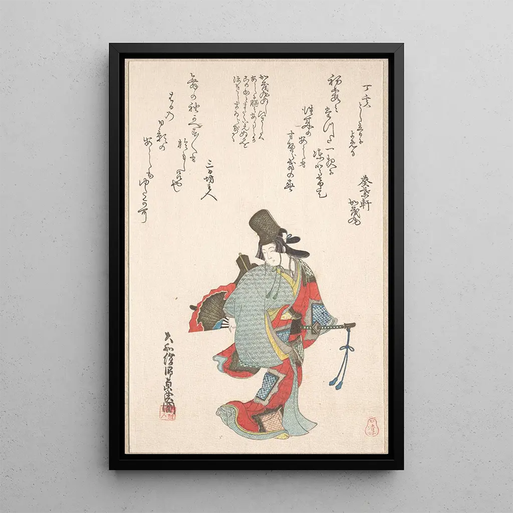 Konsttrycket av Oishi Matoras Dansare framkallar en livfull och dynamisk atmosfär. De strålande färgerna, från djupa röda till lugnande blå nyanser, fångar energin i föreställningen. Konstnärens teknik, som kombinerar akvarell och bläck, ger liv åt dansarens rörelser och skapar en känsla av lätthet och grace. Varje detalj, från draperiet i hennes kostym till uttrycken i hennes ansikte, bidrar till en harmonisk komposition som inbjuder till eftertanke och flykt till en konstnärlig värld där dansen blir en fullvärdig konstform.