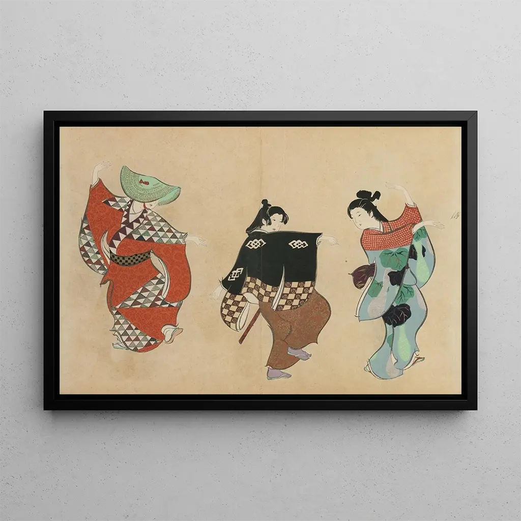 La reproduction Danse Odori de Kamisaka Sekka évoque une atmosphère de légèreté et de fluidité. Les couleurs vives et les motifs délicats s'entrelacent pour donner vie à cette scène dynamique. La technique de l'estampe sur papier, typique de l'art japonais, permet de capturer la beauté éphémère des mouvements des danseurs. Chaque détail, des vêtements ornés aux expressions des visages, contribue à une composition harmonieuse qui invite à la contemplation. Cette œuvre est un véritable hommage à la culture japonaise, où la danse est souvent perçue comme une forme d'art spirituel et esthétique.