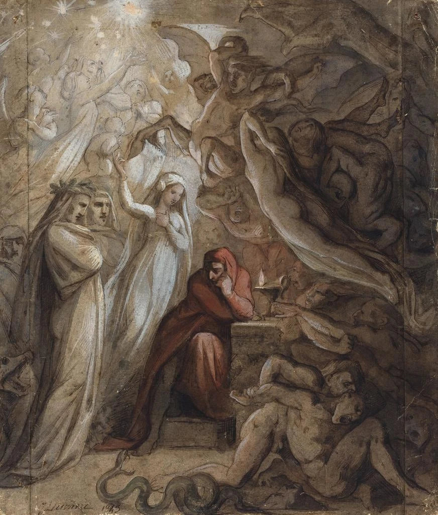 Dante mediterar över Den gudomliga komedin - Jean-Jacques Feuchère