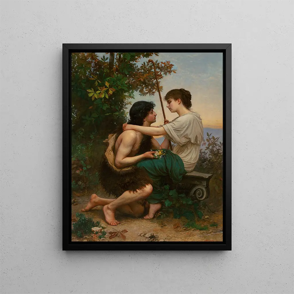 I konstvärlden överskrider vissa verk den enkla ramen för målningen för att bli visuella berättelser fyllda av känslor och poesi. "Daphnis och Chloé" av Camille Félix Bellanger är ett lysande exempel. Detta verk, inspirerat av den mytologiska kärlekshistorien mellan Daphnis och Chloé, framkallar naturens skönhet och känslornas renhet. Genom att dyka in i detta konsttryck transporteras betraktaren omedelbart till en värld där kärlek och natur flätas samman, vilket skapar en atmosfär som är både lugn och förtrollande. Fintheten i linjerna och färgernas rikedom inbjuder till djup eftertanke, vilket gör varje blick på målningen unik och personlig.
