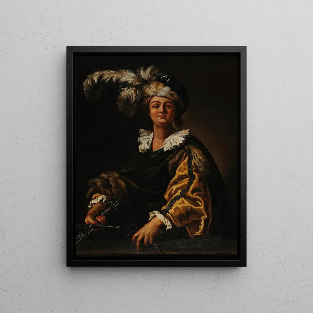 Föreställningen av David, en ikonisk figur inom västerländsk kultur, finner ett särskilt eko i det anonyma verk som presenteras för oss. Denna skapelse, även om den saknar en känd konstnär, bär på rikedomar från en tid och en konstnärlig tradition som överskrider tidens gränser. I detta verk bjuds betraktaren in att dyka in i en värld där skönhet och tragedi möts, där den bibliska hjältefigurens styrka lyfts fram genom en konstnärlig behandling som väcker eftertanke. Davids kraft, beväpnad med sin slunga, symboliserar inte bara segern över Goliat utan också triumfen för anden över materien, ett tidlöst tema som fortfarande resonerar idag.