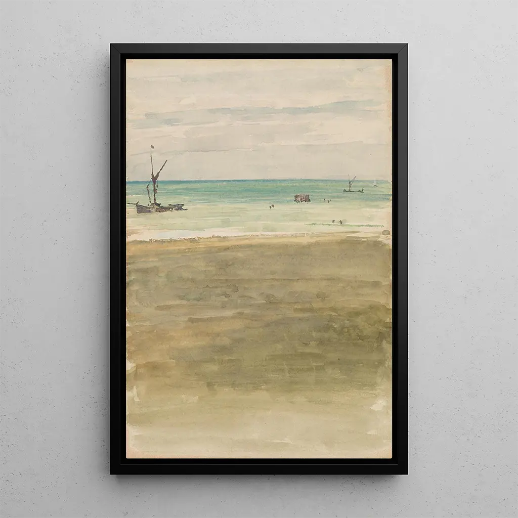 James Abbott McNeill Whistler, född 1834, är en ikonisk figur inom amerikansk konst under 1800-talet. Påverkad av den europeiska impressionismen, utvecklade han en unik stil som förenar färg och ljus med en harmonisk komposition. Whistler är också känd för sina porträtt och landskap, men det är i sina scener från vardagslivet som han utmärker sig. "Les Baigneuses" är ett exempel på en period då konsten börjar frigöra sig från akademiska konventioner, vilket markerar en övergång till modern konst. Hans nyskapande tillvägagångssätt har lämnat ett outplånligt avtryck på framtida generationer av konstnärer.