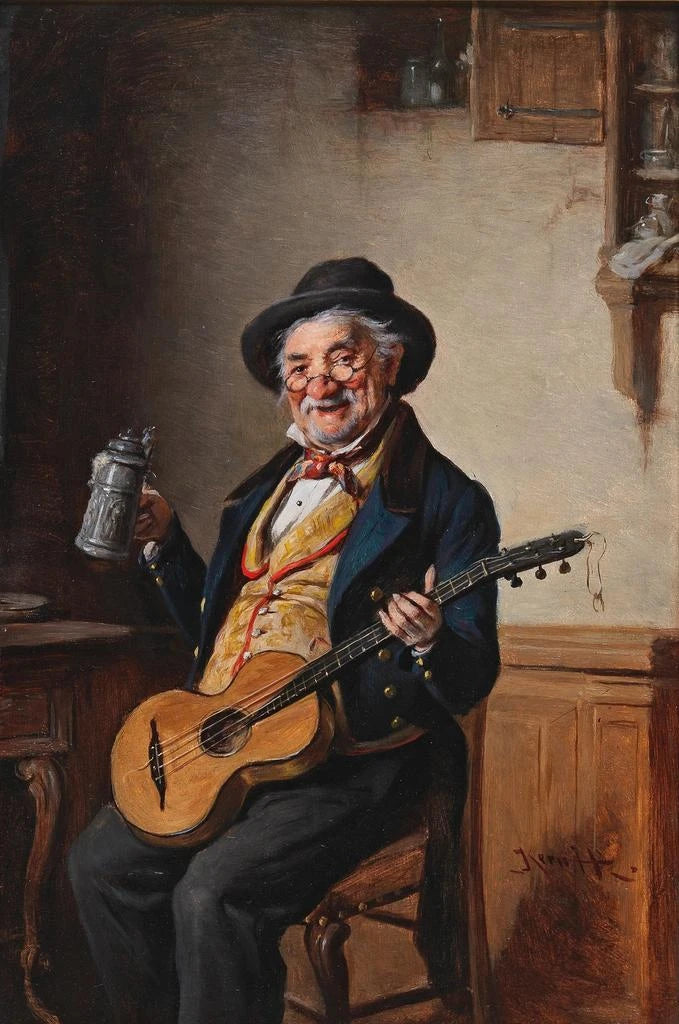 Hermann Kern, actif au début du XXe siècle, est un représentant emblématique du réalisme social. Son œuvre s'inscrit dans un contexte où l'art devient un moyen d'expression des émotions humaines et des interactions sociales. Influencé par les mouvements artistiques de son temps, Kern a su s'imprégner des préoccupations de la société tout en mettant en avant la beauté des moments quotidiens. De bonne humeur illustre parfaitement cette approche, en mettant en lumière la joie et la convivialité, des thèmes qui résonnent profondément dans l'œuvre de l'artiste.