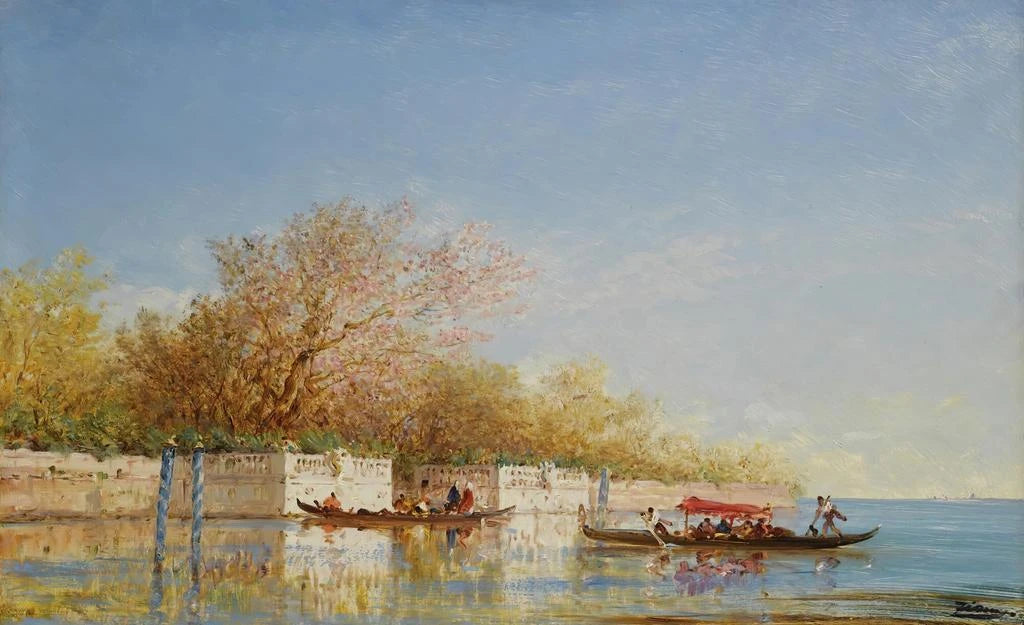 Félix Ziem, född 1821, är en fransk konstnär vars arbete påverkades av romantik och impressionism. En outtröttlig resenär, han lyckades fånga skönheten i de landskap han mötte under hela sitt liv, särskilt de i Frankrike och Venedig. Hans stil, kännetecknad av livfulla färger och noggrann uppmärksamhet på detaljer, har gjort honom till en respekterad och beundrad konstnär. De franska trädgårdarna, liksom många av hans verk, speglar hans kärlek till naturen och hans önskan att förmedla känslor genom sina konstverk, vilket stärker hans konstnärliga arv.