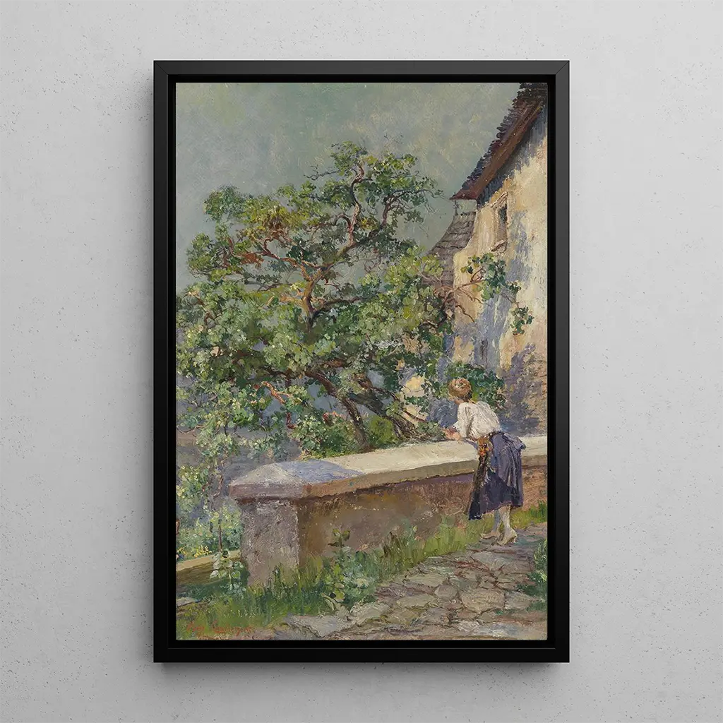 "De la Wachau" är ett konsttryck som framkallar skönheten i de österrikiska vinlandskapen, målat med en anmärkningsvärt fin känsla av Hugo Charlemont. De gröna kullarna, spridda med frodiga vinrankor, sträcker sig så långt ögat kan nå, medan Donau slingrar sig graciöst nedanför. Charlemont använder en palett av mjuka färger, blandande ljusa gröna och lugnande blå nyanser, vilket skapar en atmosfär av lugn och harmoni. Ljuset spelar en avgörande roll i denna komposition, belyser bladen och tillför en nästan magisk dimension till detta konstverk. Varje detalj, från vinrankorna till molnen, vittnar om konstnärens kärlek till naturen.