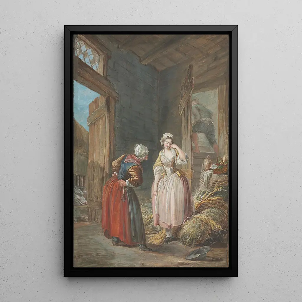 I detta delikata konsttryck fångar Pierre-Antoine Baudouin ett flyktigt ögonblick mellan två älskare, inbäddat i en atmosfär av ömhet och mystik. De mjuka färgerna och ljusspel skapar en romantisk stämning, medan den harmoniska kompositionen leder blicken mot protagonisterna. Konstnärens teknik, som blandar finhet i detaljerna med flyt i formerna, väcker en påtaglig känsla, vilket gör detta konsttryck av Les Amants överraskade särskilt rörande. Varje element i målningen, från draperier till uttryck, bidrar till en visuell berättelse som inbjuder till eftertanke och flykt.