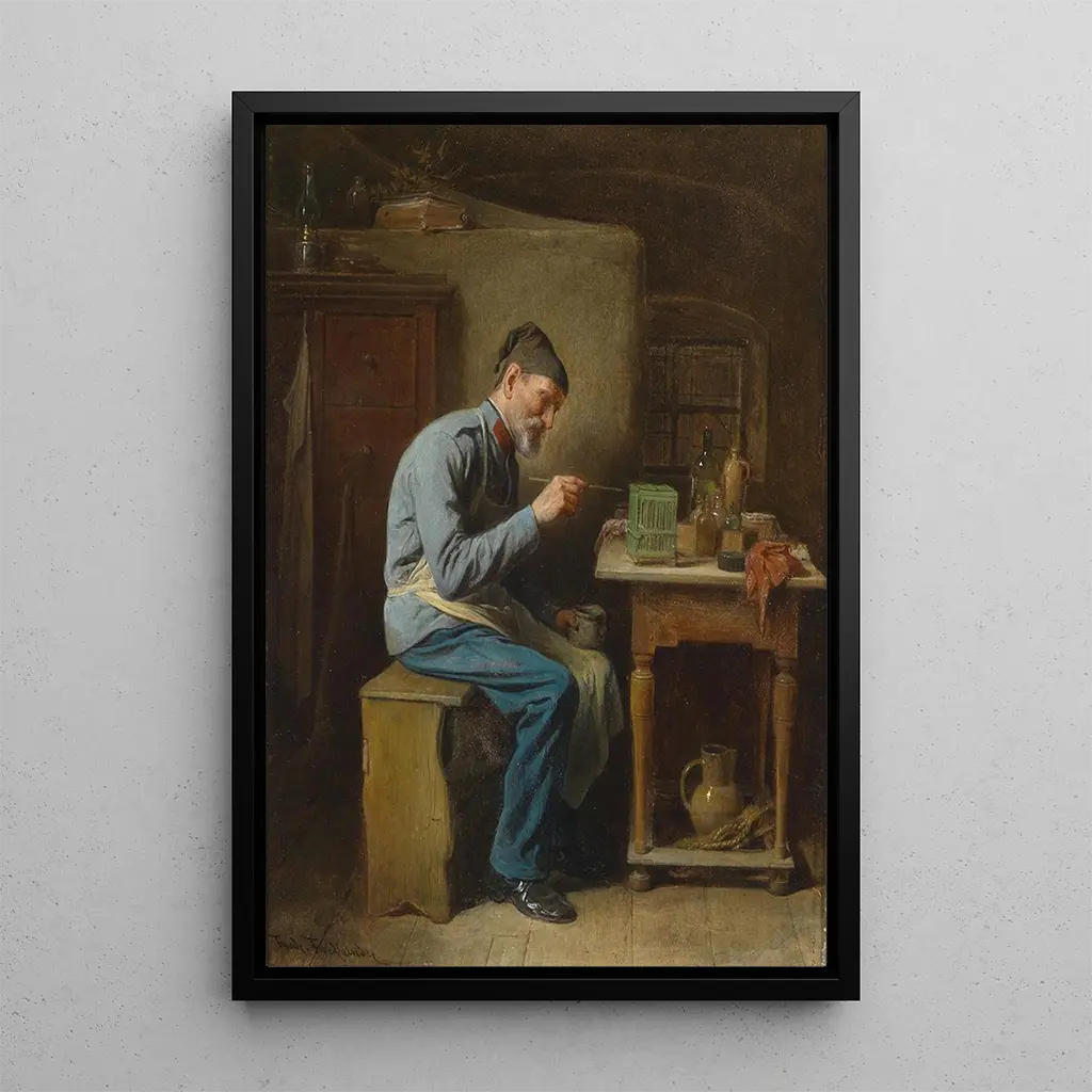 I "Amatörmålaren" fördjupar Friedrich Friedländer oss i en värld där konst och passion möts. Tavlan skildrar en spirande konstnär, absorberad av sitt arbete, omgiven av livfulla färger och utspridda penslar. De varma nyanserna och ljusglimtarna skapar en vibrerande, nästan påtaglig atmosfär. Verket väcker glädjen av att skapa, fångar ett ögonblick av intensiv koncentration och flykt. Varje penseldrag verkar berätta en historia, inbjuder betraktaren att känna den råa känsla som utstrålar från denna intima scen.