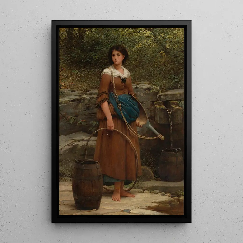 George Dunlop Leslie, actif à la fin du XIXe siècle, est un peintre britannique influencé par le mouvement préraphaélite, qui prônait un retour à la nature et à la beauté des détails. Formé à la Royal Academy, il a su capturer des scènes de la vie quotidienne avec une sensibilité unique. Ses œuvres, souvent peuplées de figures féminines, reflètent une fascination pour la beauté et la simplicité. La Jeune Fille Brune s'inscrit dans cette tradition, mêlant romantisme et réalisme pour créer une atmosphère empreinte de poésie. Son travail a marqué son époque et continue d'inspirer les amateurs d'art.