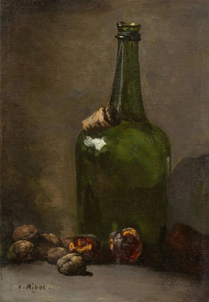 Målning La bouteille pleine - Théodule Ribot | Konsttryck