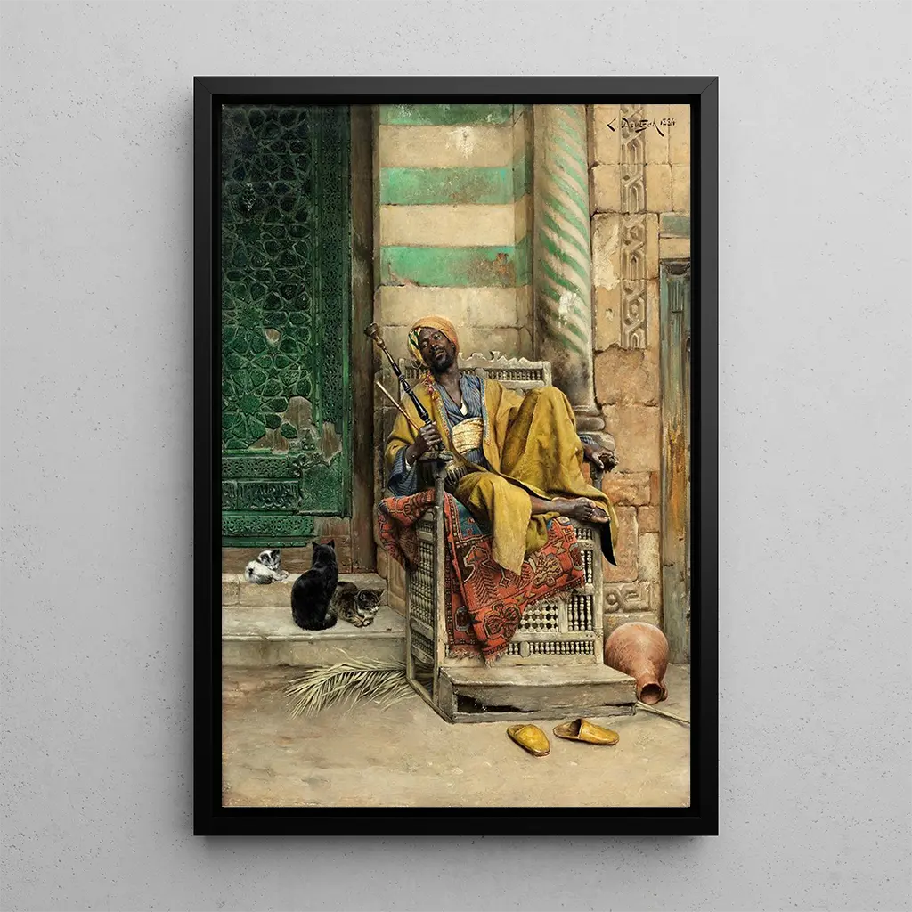 Ludwig Deutsch, né en 1855 à Vienne, est un peintre autrichien reconnu pour ses œuvres orientalisées. Influencé par les voyages et les récits d'explorateurs, il a su capturer l'essence de la vie quotidienne dans les pays du Moyen-Orient. Sa période de création s'étend principalement à la fin du XIXe siècle, une époque où l'orientalisme connaît un essor considérable dans l'art européen. Deutsch se distingue par son souci du détail et son approche réaliste, qui lui ont permis de se faire un nom parmi les grands artistes de son temps. Ses œuvres, comme "Le Fumeur de goza", témoignent de son talent et de son engagement à représenter la culture orientale avec respect et authenticité.