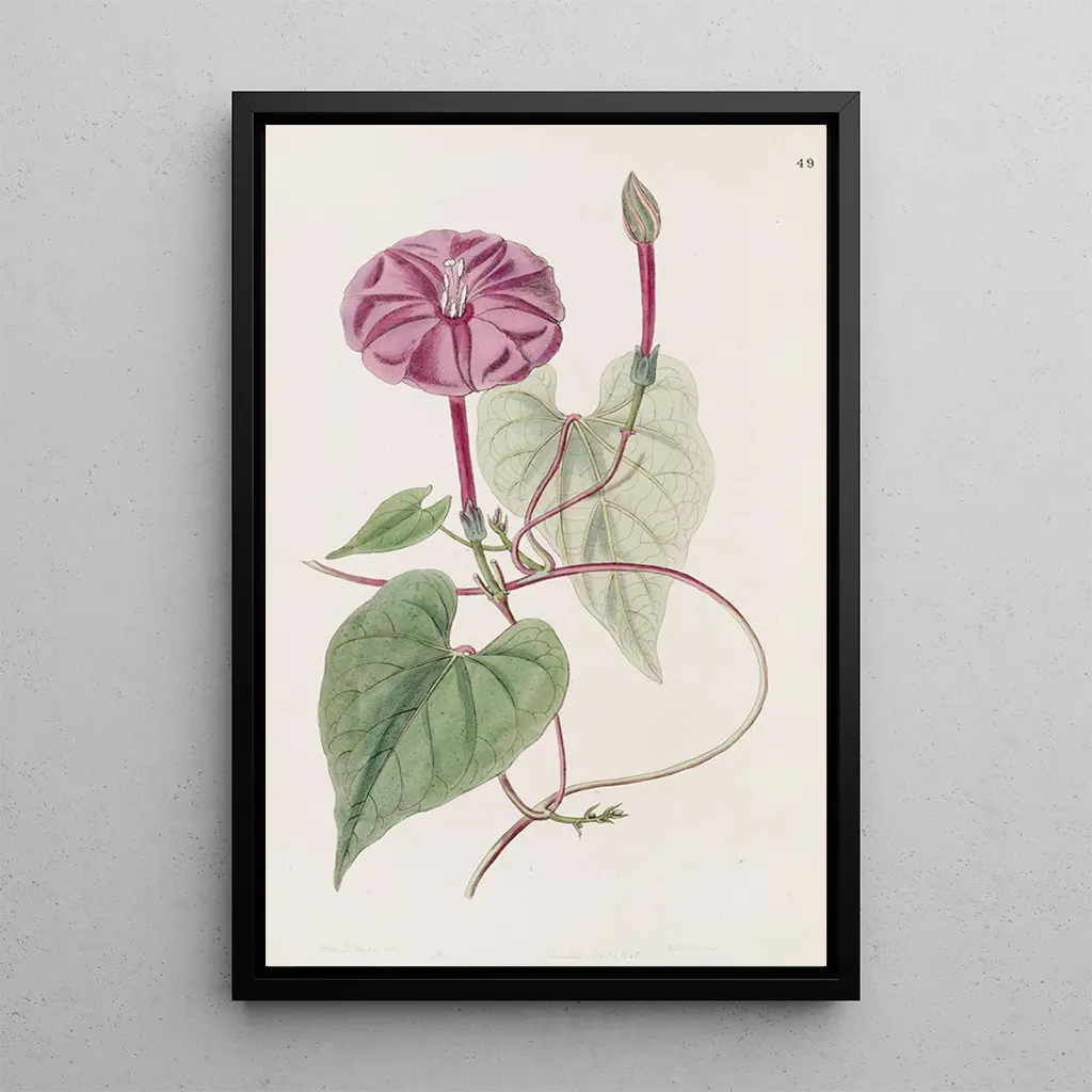 La riktiga Jalap-växten, med sina organiska former och jordnära färger, framträder i ett konsttryck som hyllar växtlighetens rikedom. Detta botaniska konstverk, noggrant utfört, lyfter fram de subtila detaljerna i blad och blommor, och skapar en atmosfär som är både livfull och lugn. Tekniken för illustration av Sydenham Edwards, kännetecknad av precisa drag och naturliga nyanser, gör det möjligt att uppskatta den inneboende skönheten hos denna medicinska växt. Varje element i konstverket inbjuder till en utforskning av naturens underverk, samtidigt som det väcker en känsla av nyfikenhet och förundran.