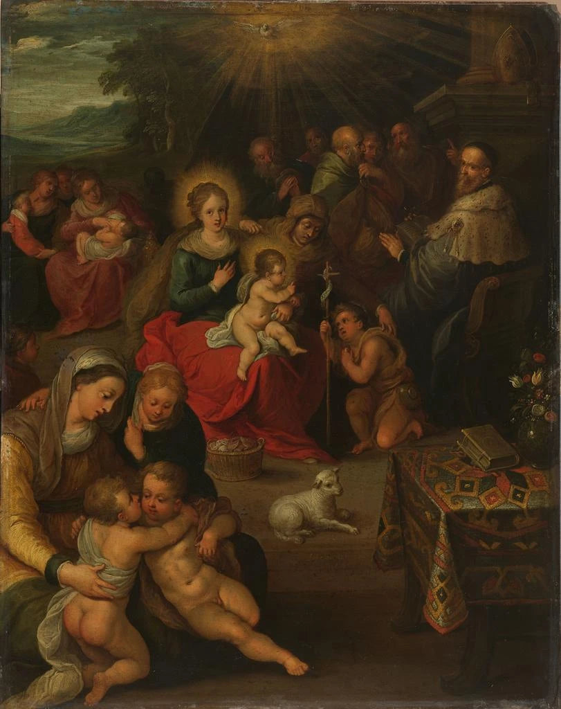 L'œuvre "La Sainte Parenté" av Frans Francken le Jeune är en del av en rik konstnärlig tradition, där skildringen av den heliga familjen får en dimension som är både andlig och mänsklig. Detta konstverk, fyllt av fromhet, inbjuder oss att betrakta relationen mellan Jungfru Maria, Barn Jesus och deras omgivning. Genom noggranna detaljer och en palett av harmoniska färger lyckas Francken skapa en målning som transcenderar det enkla religiösa porträttet för att bli en verklig hyllning till moderskap och familjekärlek. Scenen som avbildas klingar med universella känslor och berör åskådarens hjärta genom århundradena.