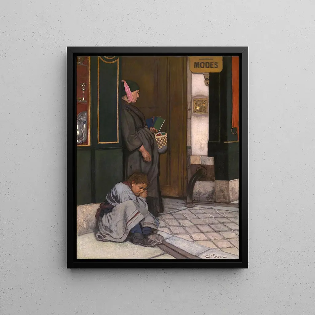 I det rika och komplexa 1800-talets konstvärld framstår Konsttryck "Den tolererade tiggen" av Alfred Stevens som ett gripande vittnesmål om samtidens sociala dynamik. Denna målning, som fångar själva essensen av den mänskliga tillvaron, väcker en djup reflektion kring fattigdom och medkänsla. Genom en finstämd komposition och en noggrant utvald färgpalett bjuder Stevens in betraktaren att fördjupa sig i en värld där nöd och mänsklighet möts. Den scen som skildras är både intim och universell, och erbjuder en klar blick på individers sårbarhet samtidigt som den väcker en tydlig empati. Detta mästerverk, som fortsätter att fascinera, förtjänar att återupptäckas och uppskattas för sin emotionella djup och sin tekniska skicklighet.