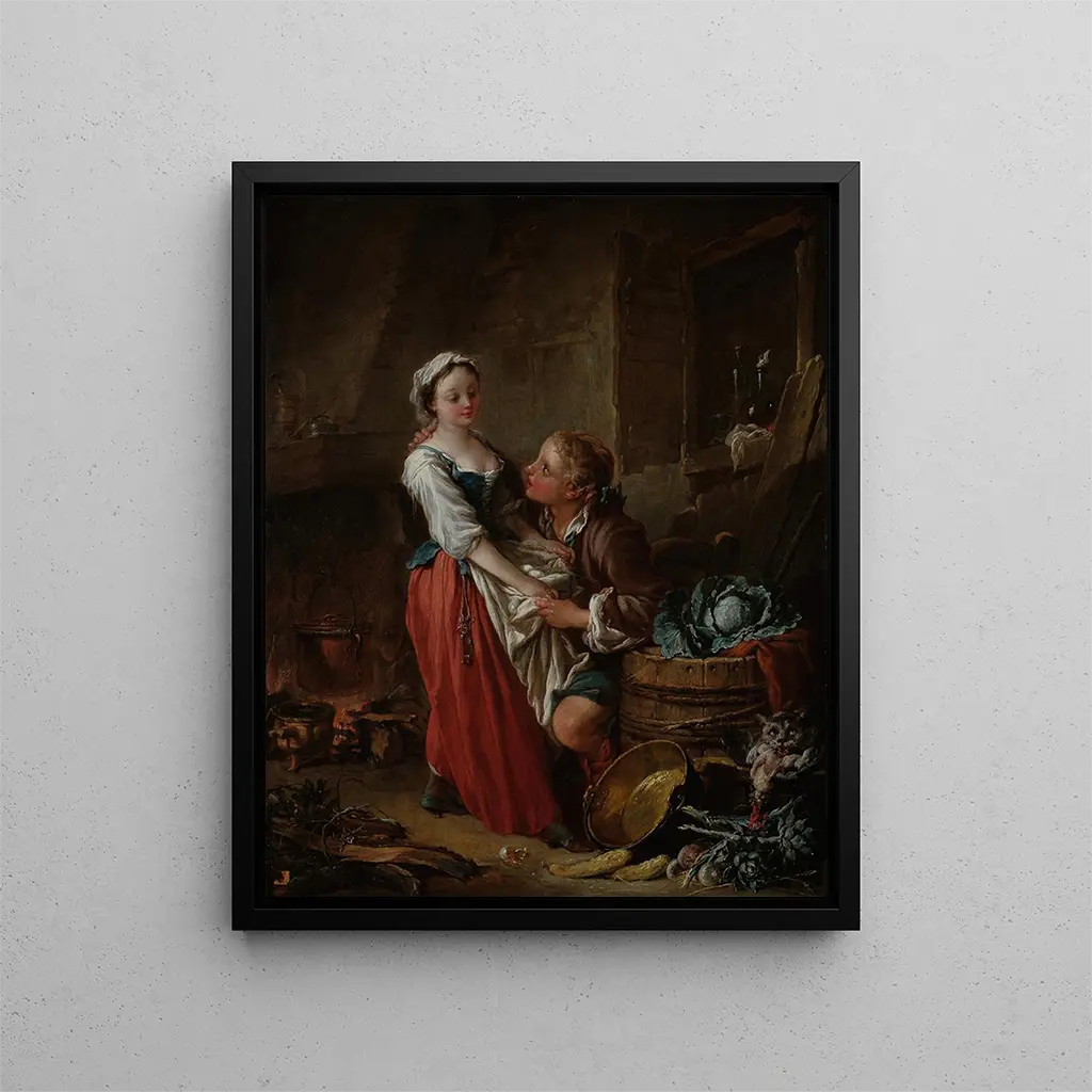 François Boucher, född 1703, är en av de mest inflytelserika målare inom rokoko-rörelsen. Hans verk speglar inte bara tidens smak, utan också en personlig syn på skönhet och nöje. Boucher lyckades etablera sig som hovets målare, särskilt under Louis XV:s regeringstid, då han utförde många beställningar för kungen och adeln. Hans stil, kännetecknad av dynamiska kompositioner och motiv ofta inspirerade av mytologin, har satt avtryck i fransk konst och påverkat många konstnärer. La Belle Cuisinière, som trots sin vardaglighet, visar på denna förmåga att transcendera det banala och förvandla det till konst.