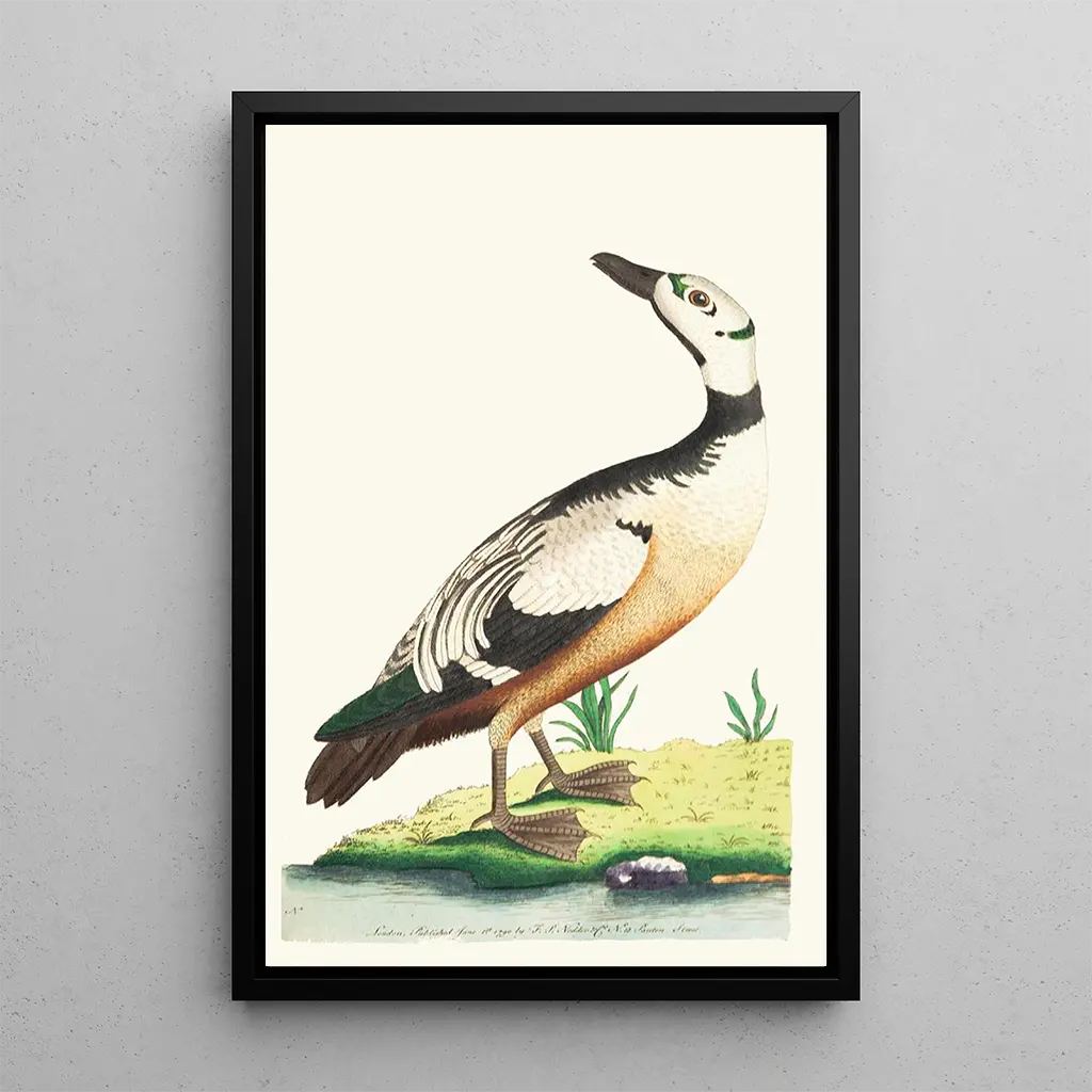 Konsttrycket "Le canard occidental" av George Shaw fångar den råa skönheten i faunan. Med livfulla färger och noggranna detaljer framkallar verket en lugn och kontemplativ atmosfär. Shaw använder en oljemålningsteknik som gör det möjligt att återge texturen på fjädrarna och glansen av reflektioner på vattnet. Kompositionen, centrerad kring andan, drar omedelbart ögat till sig och inbjuder till en fördjupning i dess naturliga habitat. Varje penseldrag tycks andas liv, vilket gör detta konsttryck till en verklig hyllning till naturen.