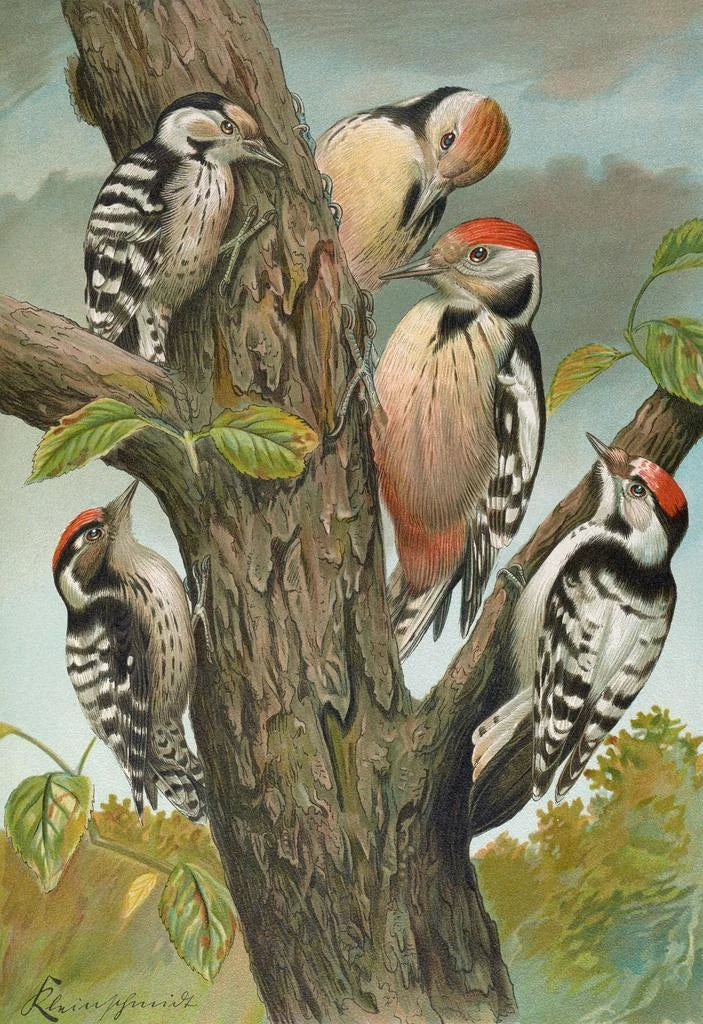 Konsttryck | Dendrocopus medius Dendrocopus minor - Johann Friedrich Naumann