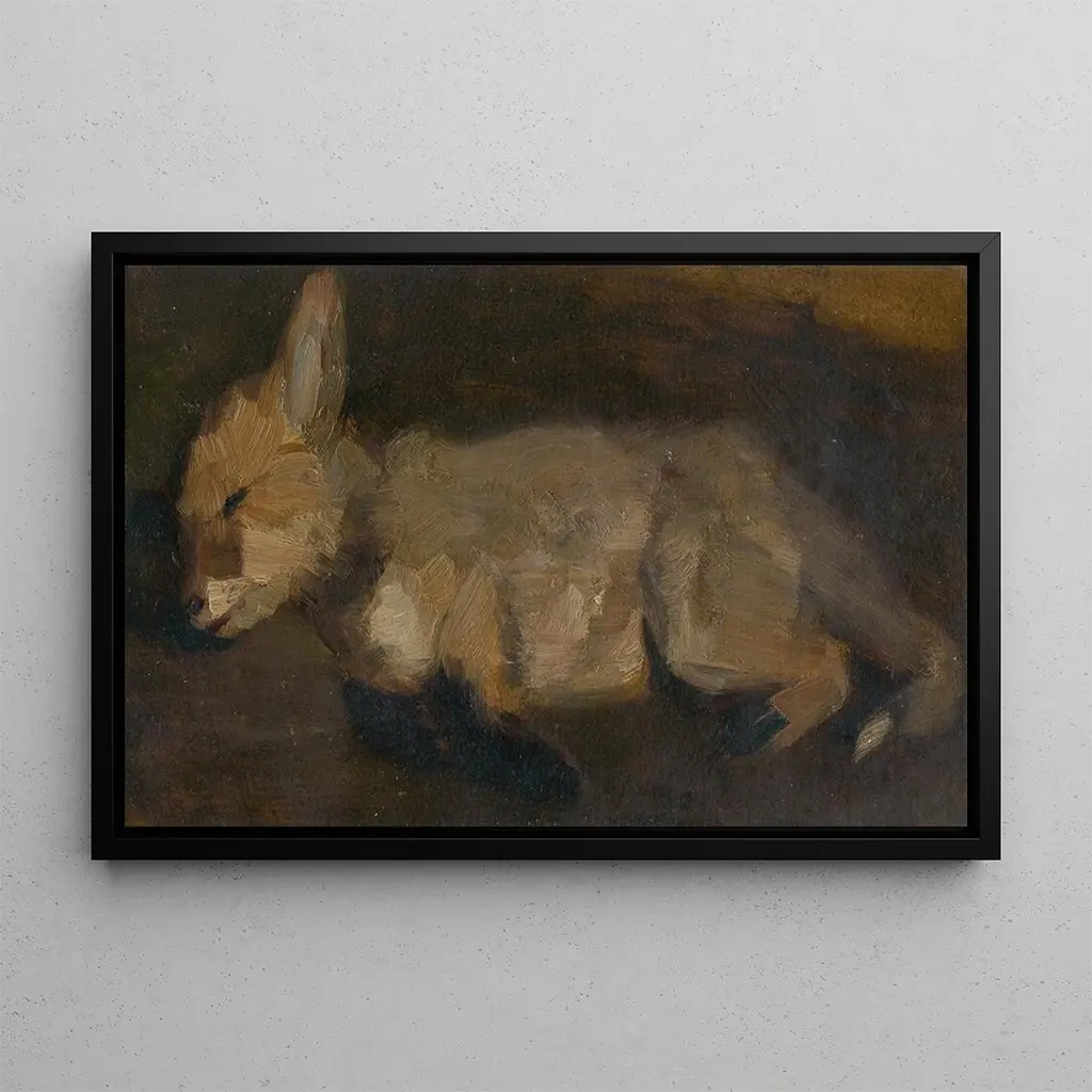 "Renard mort" är ett konsttryck som väcker känslor med sin slående realism och sitt gripande motiv. Framställningen av en räv, fastfrusen i ett ögonblick av evig vila, väcker tankar om livets skörhet och naturens skönhet. De noggrant utarbetade detaljerna i pälsen och nyanserna av färg, från den glänsande röda till de mörkare skuggorna, vittnar om en skicklig teknik. Atmosfären som genomsyrar denna målning är både melankolisk och kontemplativ, inbjuder betraktaren att reflektera över livscykeln.
