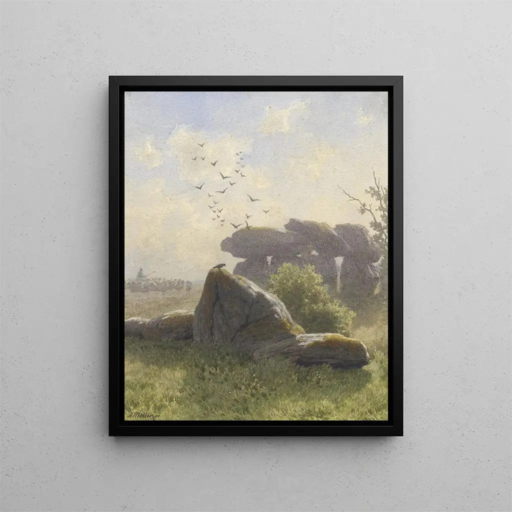 I det vidsträckta panorama av samtida konsthistoria framträder vissa verk genom sin förmåga att överskrida tid och rum. Reproduktionen Dolmen - Alexander Mollinger är ett utmärkt exempel. Detta fängslande stycke väcker djupa resonanser och bjuder in betraktaren till en introspektiv resa till mänsklighetens mysterier. Mollinger, med en imponerande skicklighet, lyckas fånga själva essensen av dolmen, dessa megalitiska strukturer som har genomgått tiderna och vittnar om ritualer och trosuppfattningar hos försvunna civilisationer. Genom detta verk uppmanar konstnären oss att reflektera över vår plats i världen och de spår vi lämnar efter oss.