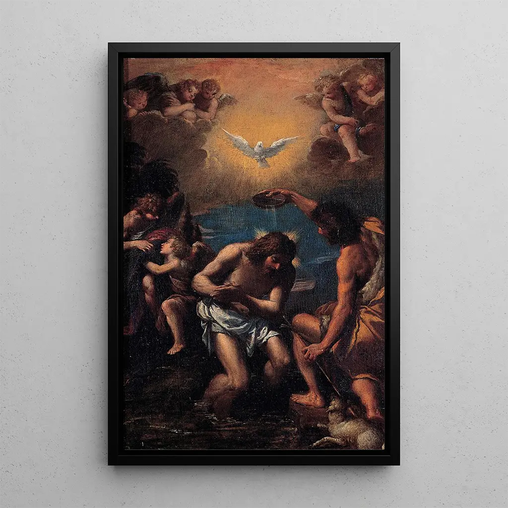 Baptême du Christ : en helig scen med en känsla av lugn Konsttrycket "Baptême du Christ" av Scarsellino framkallar en atmosfär av fred och andlighet. De mjuka färgerna, dominerade av blå och gröna nyanser, skapar en visuell harmoni som inbjuder till eftertanke. Den gudomliga ljuset verkar koncentrera sig på den centrala figuren av Kristus, medan de omgivande figurerna, även om de är sekundära, tillför en narrativ djup till scenen. Scarsellinos teknik, som blandar realism med stilistiska element från renässansen, ger detta verk en nästan eterisk kvalitet och fångar ett ögonblick av andlig övergång. Scarsellino : en mästare från den italienska renässansen Scarsellino, vars riktiga namn är Giovanni Battista Scarsella, är en målare från den italienska renässansen, verksam främst i Bologna. Påverkad av de stora mästarna från sin tid, har han utvecklat en unik stil som förenar detaljrikedom med uttrycksfullhet. Hans verk präglas ofta av en strävan efter ljus och skuggor, vilket ger liv åt hans motiv. Konsttrycket "Baptême du Christ" är emblematiskt för hans tillvägagångssätt och visar både hans tekniska skicklighet och hans förmåga att förmedla djupa känslor. Detta konsttryck ingår i en rik konstnärlig tradition där andlighet och mänsklighet möts. En dekorativ förvärv med många fördelar Konsttrycket av "Baptême du Christ" är ett dekorativt föremål som kan berika vilket som helst inomhus, oavsett om det är ett vardagsrum, ett kontor eller ett sovrum. Dess reproduktionskvalitet garanterar en trohet mot de ursprungliga detaljerna, vilket gör det möjligt att njuta av verket i all sin prakt. Den estetiska dragningskraften hos detta konsttryck ligger inte bara i dess visuella skönhet, utan också i det andliga budskapet det förmedlar. Att hänga detta konsttryck hemma är att bjuda in en del av konsthistorien och lugnet i ens livsrum.